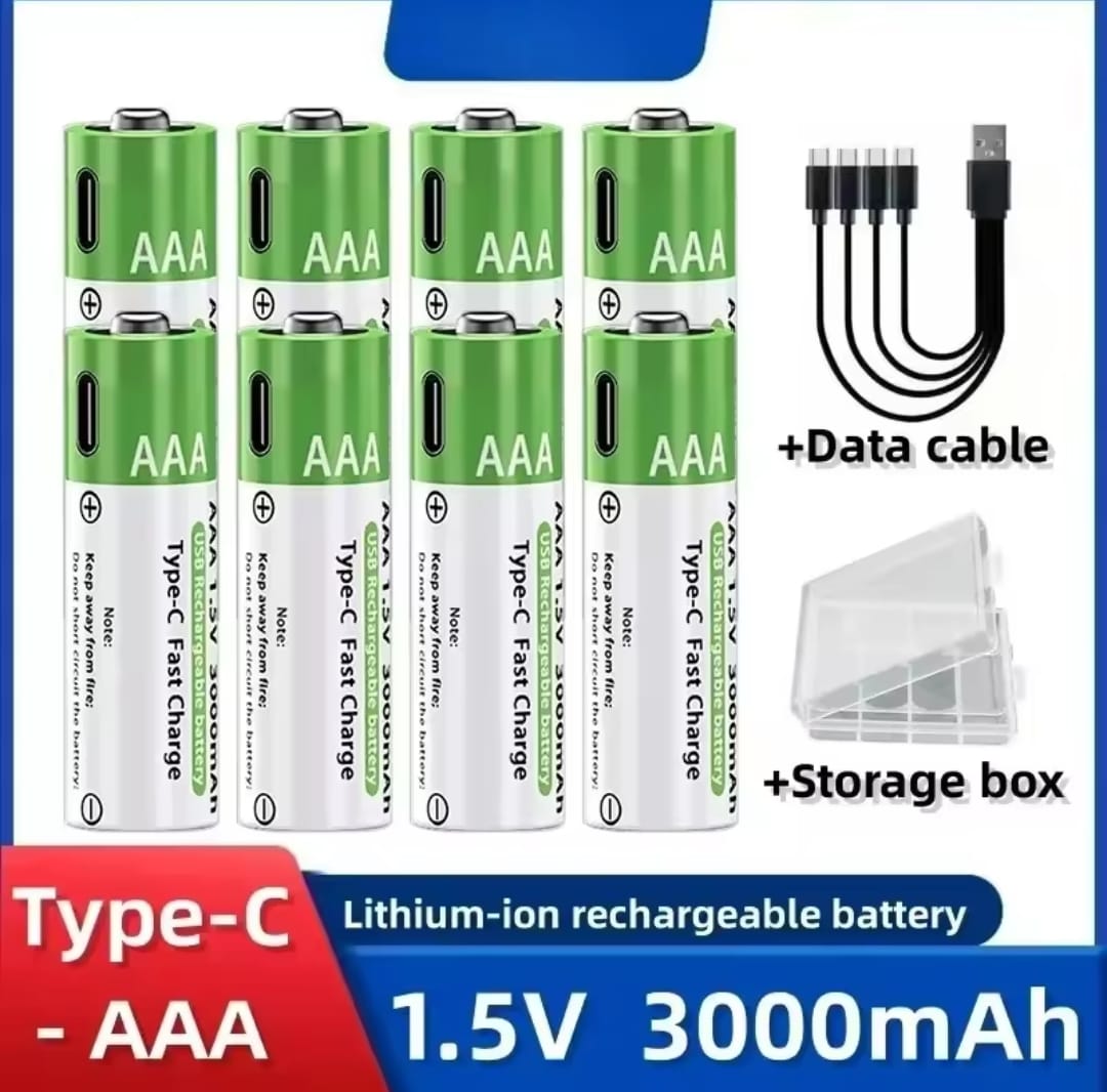 בטריות AAA נטענות עם חיבור USB Type-C, מיועדות לשימוש חוזר במכשירים אלקטרוניים קטנים הדורשים מקור מתח סטנדרטי. מאפשרות טעינה נוחה וישירה ללא צורך במטען ייעודי.