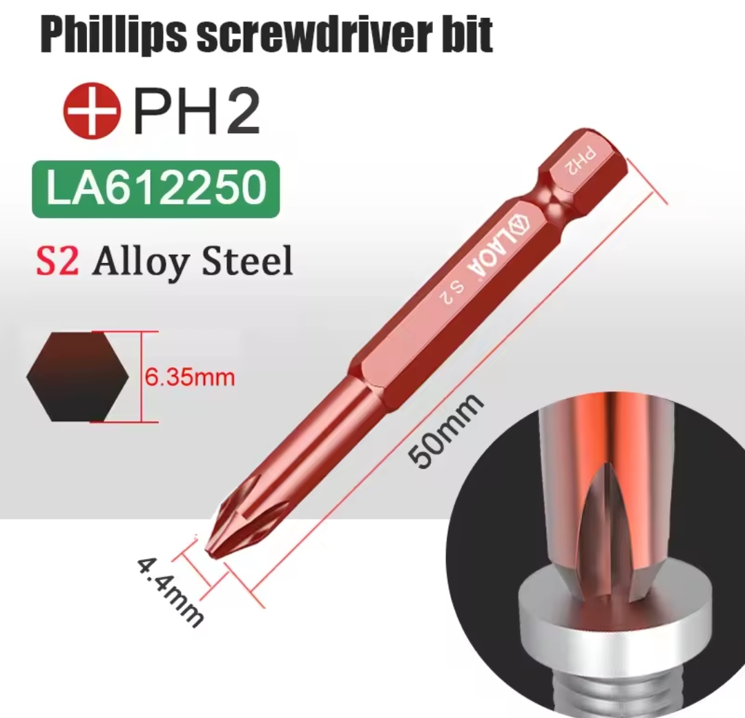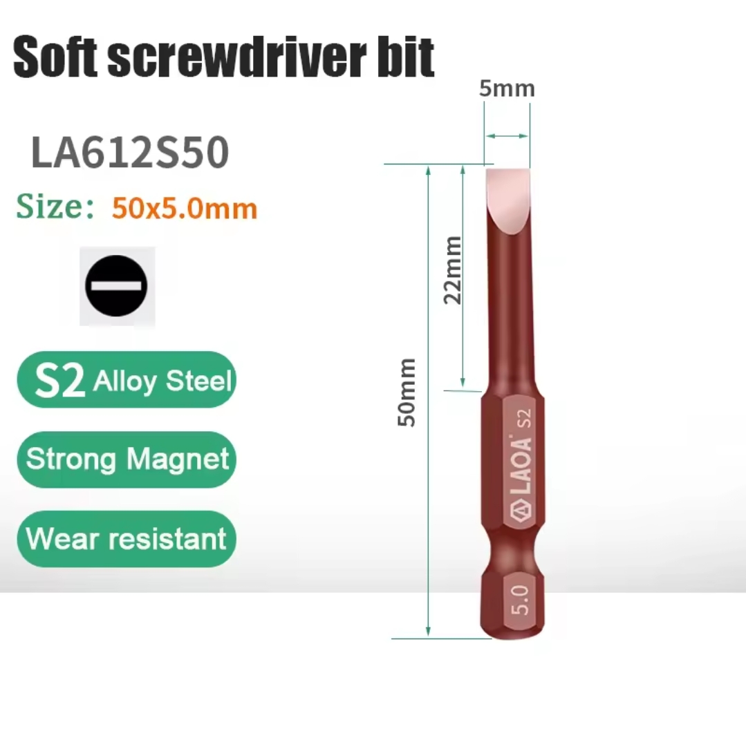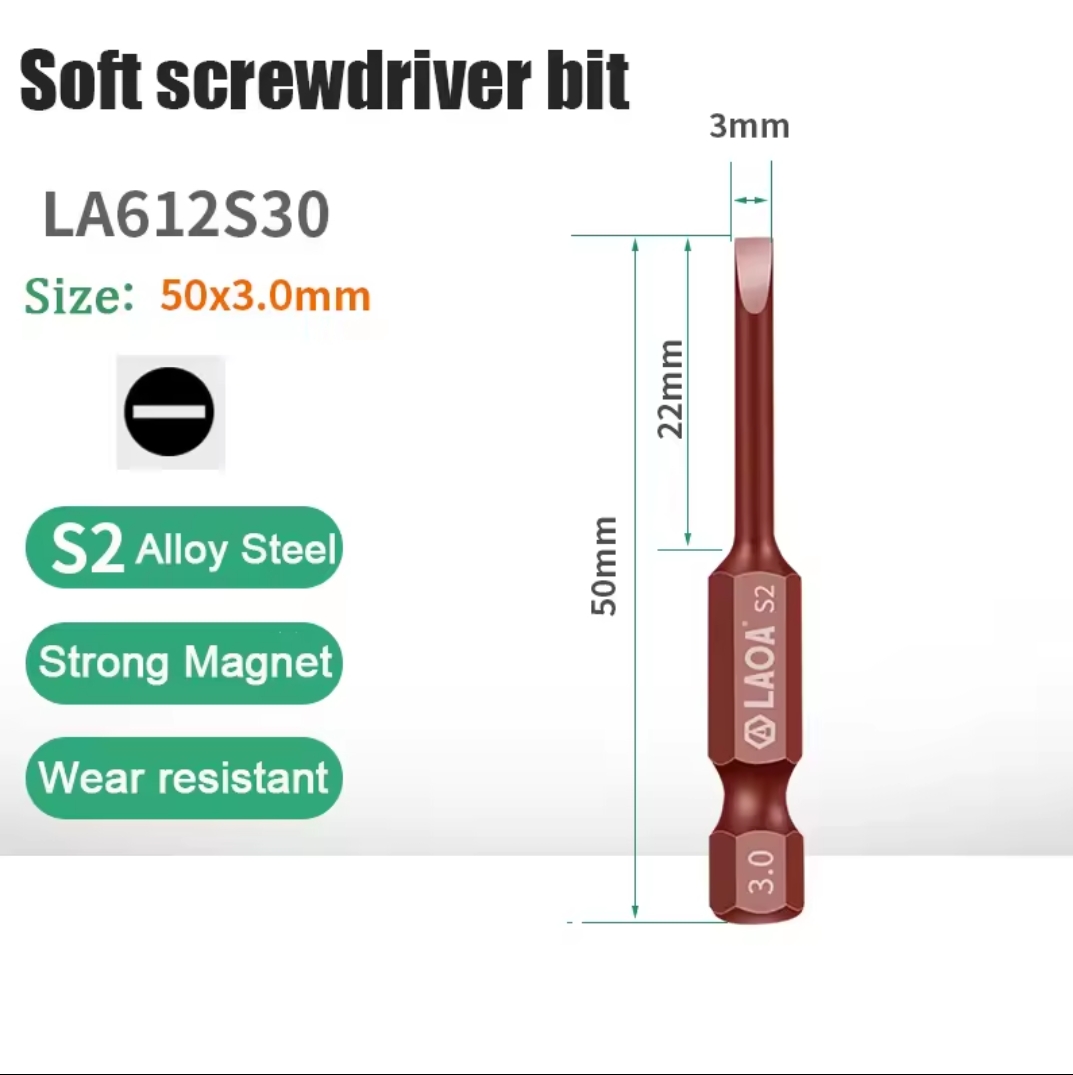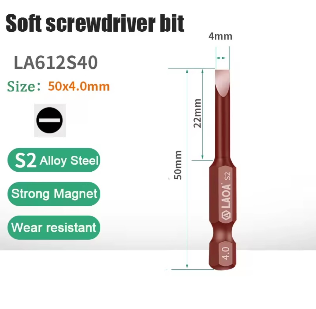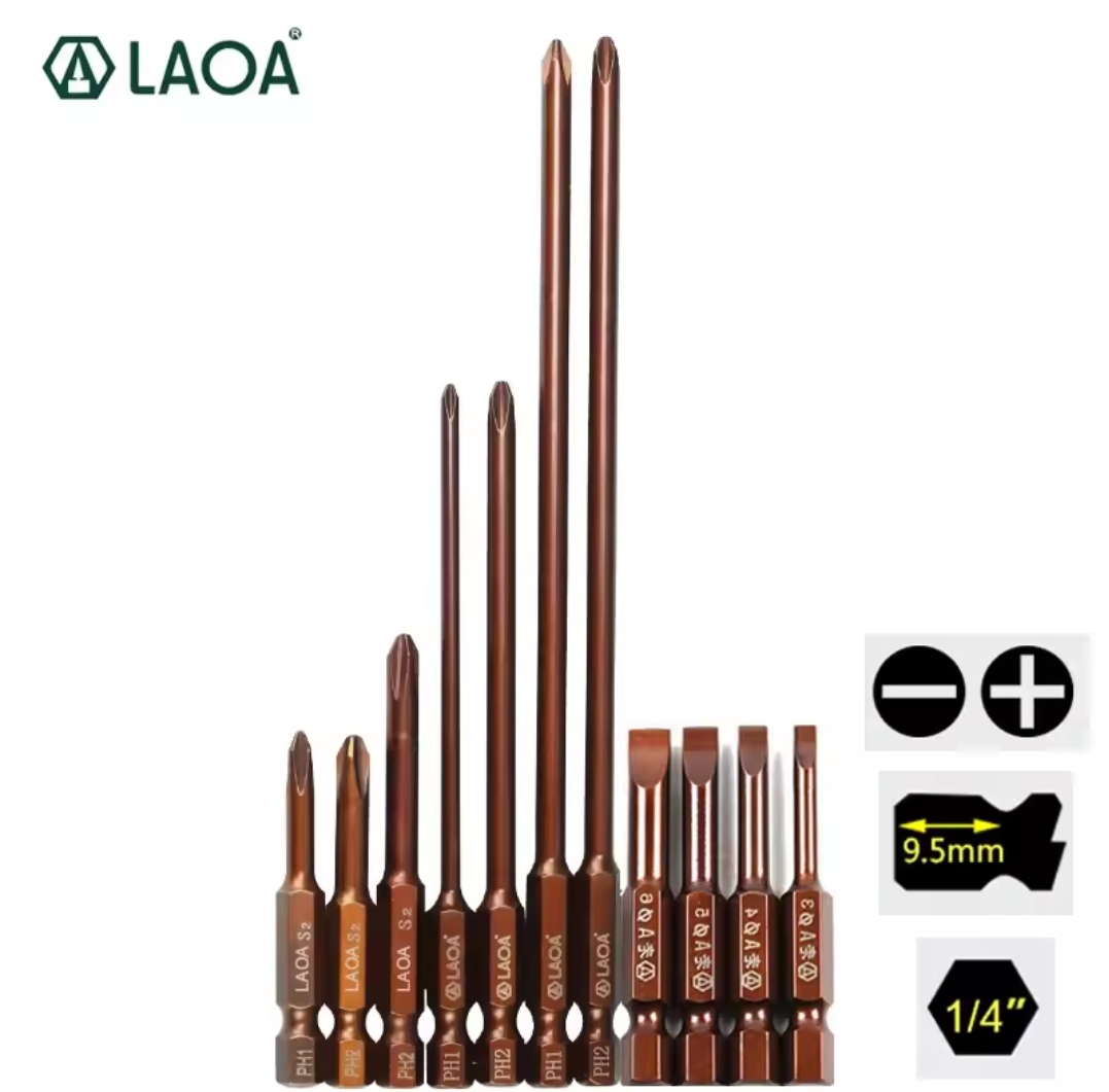 ביט פלדת סגסוגת S2 למברגה חשמלית ביט מברגה LAOA 1pc מקדחה ידנית עם מגנטיזם סוג חריץ ביט פיליפס