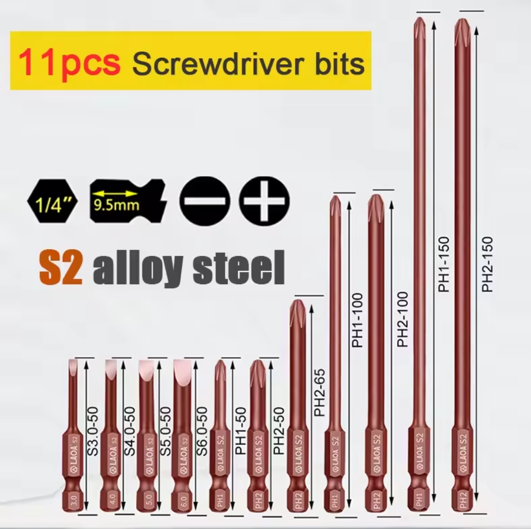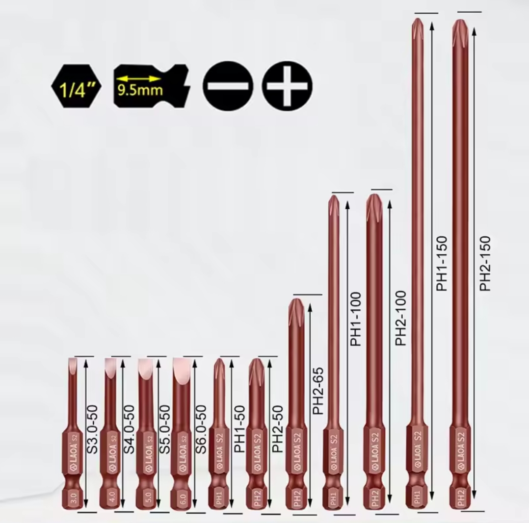 / ביט פלדת סגסוגת S2 למברגה חשמלית ביט מברגה LAOA 1pc מקדחה ידנית עם מגנטיזם סוג חריץ ביט פיליפס