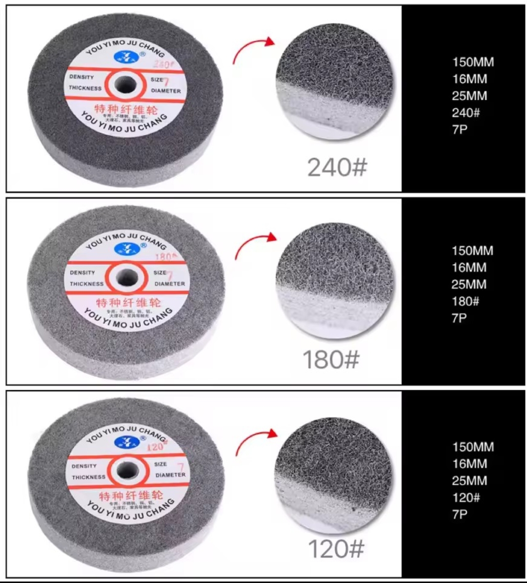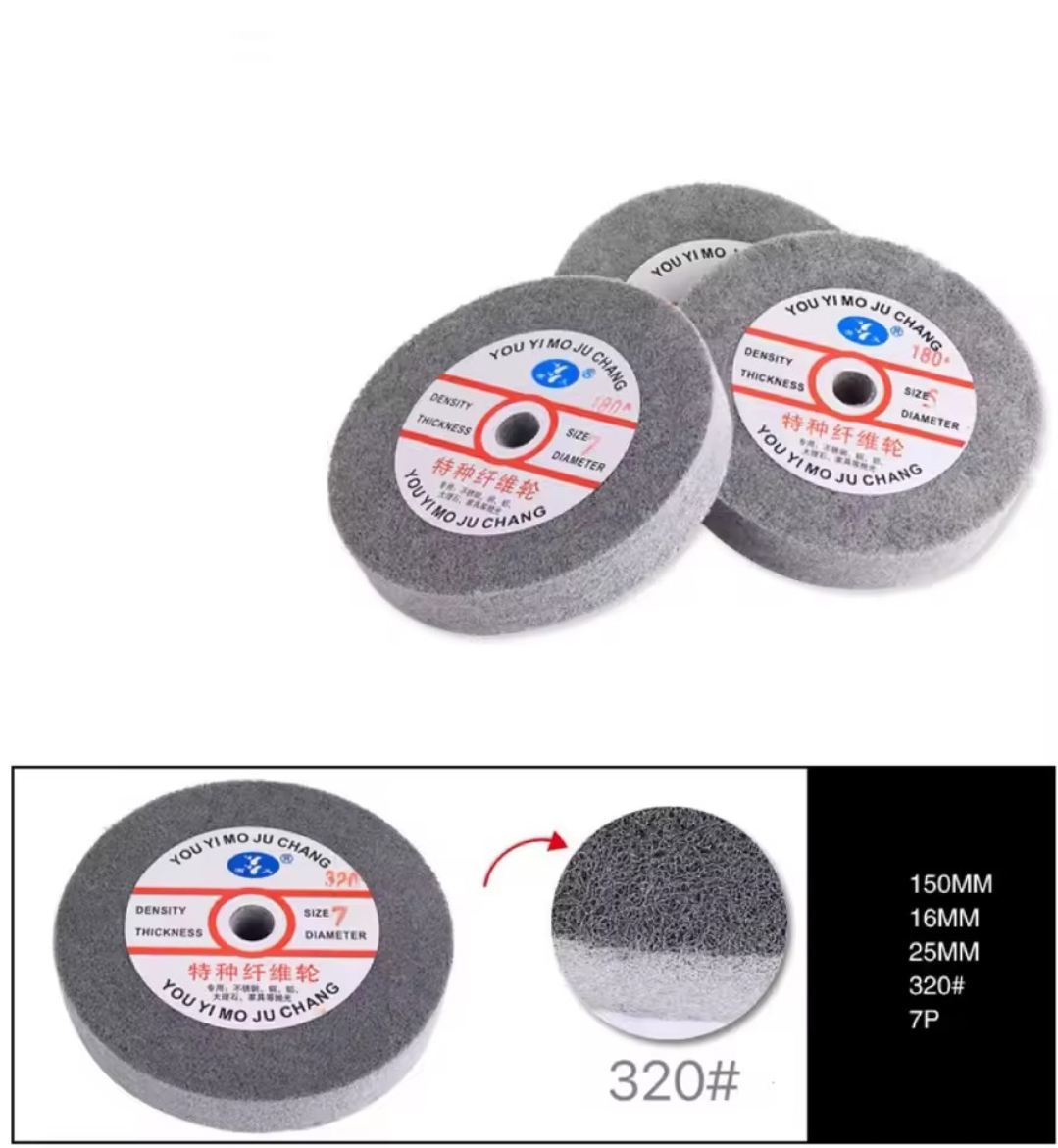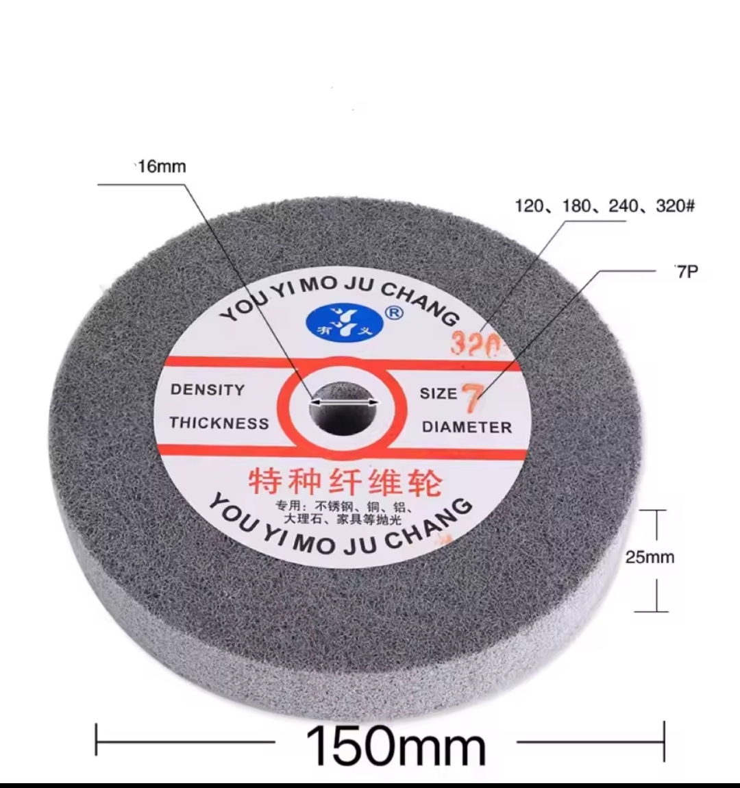 גלגל פוליש מתכת 150*25mm דיסק אברסיבי ניילון סיבים 5P/ 7P/9P אפשרויות #120 #180 #240 #320 לפעולות פוליש