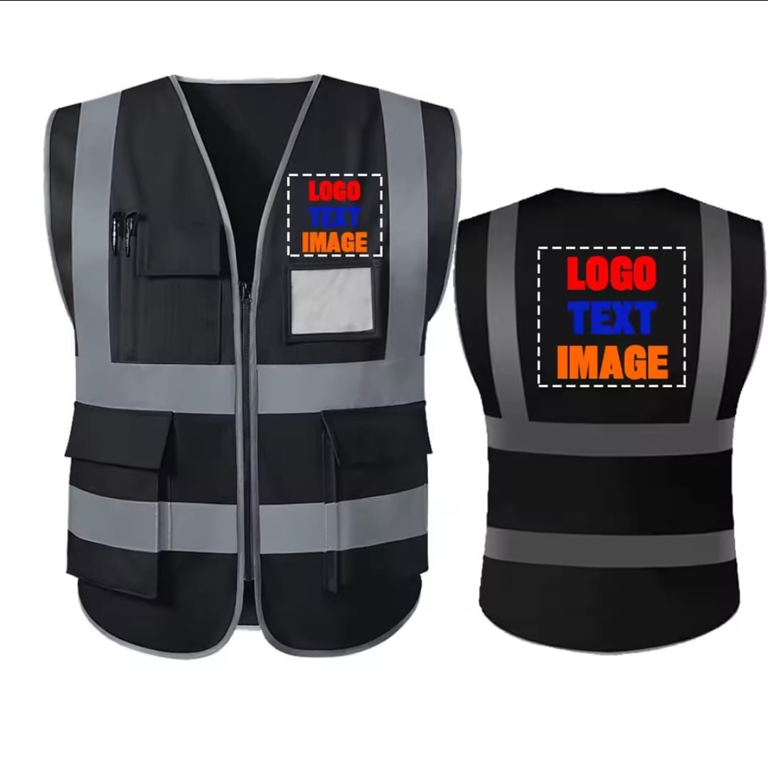 ג'קט בטיחות משקף עם לוגו מותאם אישית טקסט גובה נראות ג'קט עבודה בנייה יחידות עבודה ג'קט בטיחות מהנדס