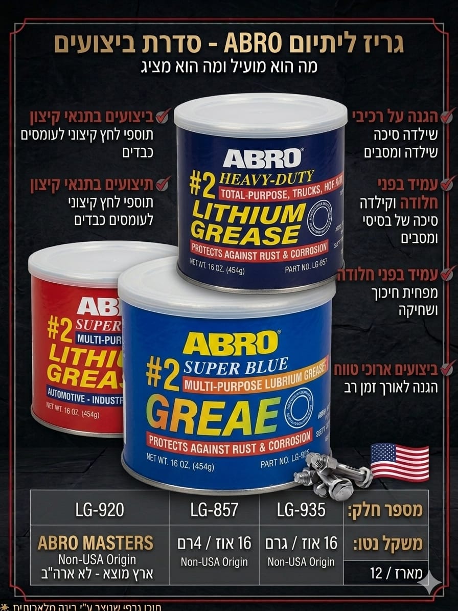 Super Red (LG-920) – מכיל תוספי לחץ קיצוני (EP), מצוין לטמפרטורות קיצוניות