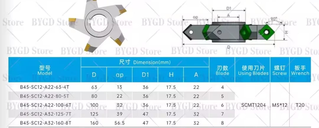 / דיסק חיתוך שלושה צדדים סוג צ'יפ מחזיק כלי V B45 SC12 45 ראש חיתוך בצורת SMC SMD SCMT SCMT1204 חיתוך