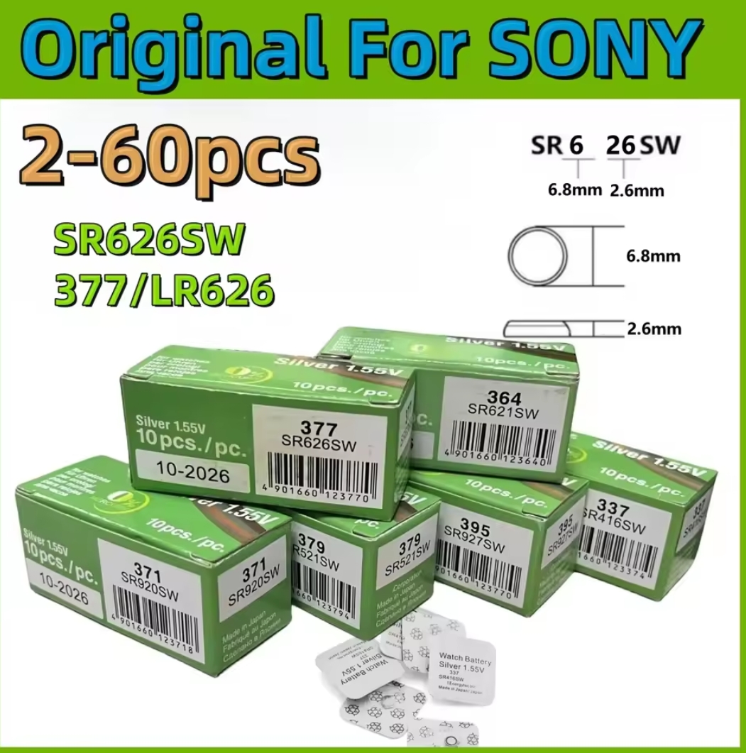/ המקורי 2-60 יחידות עבור sony sr626sw lr626 ag4 סוללות lr66 377 377a סוללה אלקליין צעצועים צעצועים מכונית טלפון אלקליין 1.55v