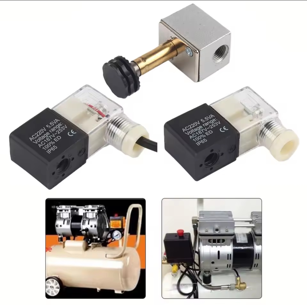 / וולב סולנואיד משאבת אוויר 220V וולב סולנואיד מדחס אוויר כוח-כיבוי פתח יציאה שקטה ללא שמן עם תאורה וחוט