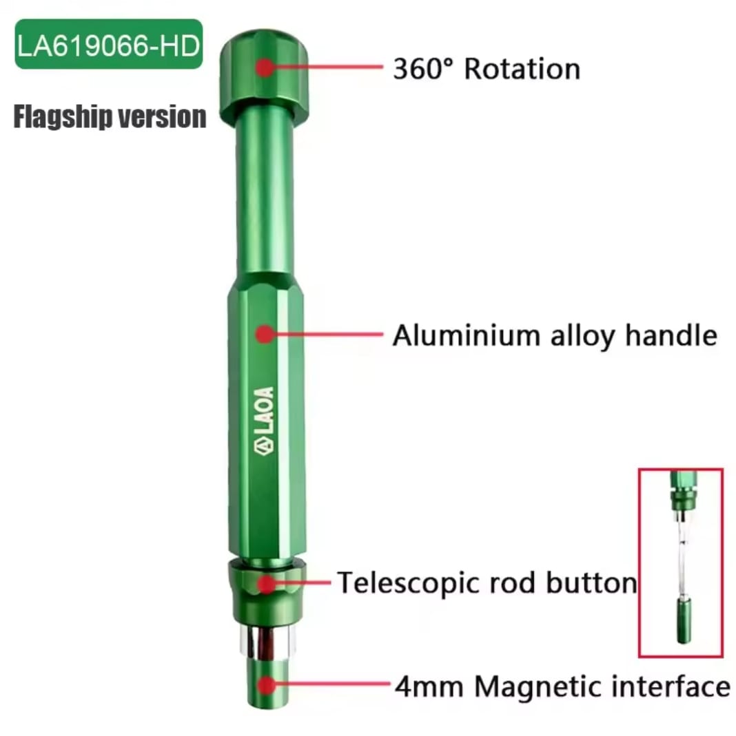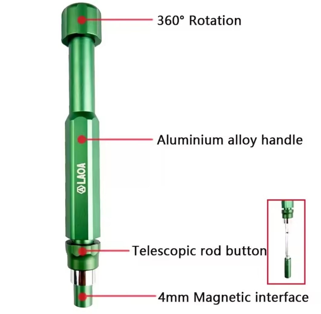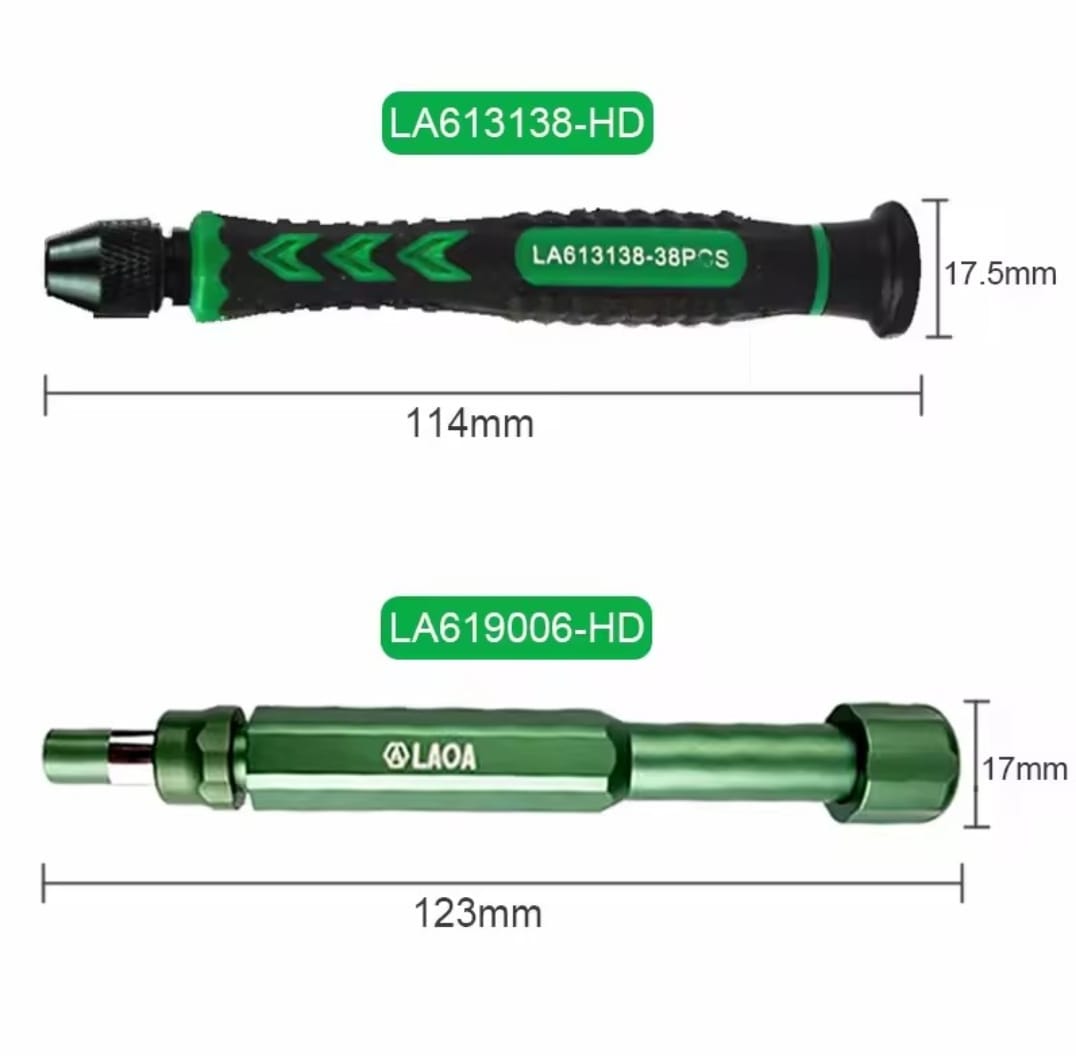 ידית ארגונומית פרימיום מבית LAOA, המתוכננת לדיוק מקסימלי בתיקון סלולר, מחשבים ומכשור עדין. הידית משלבת גוף קשיח עם ציפוי גומי רך למניעת החלקה, ומאפשרת עבודה נוחה וממושכת ללא עייפות בכף היד.