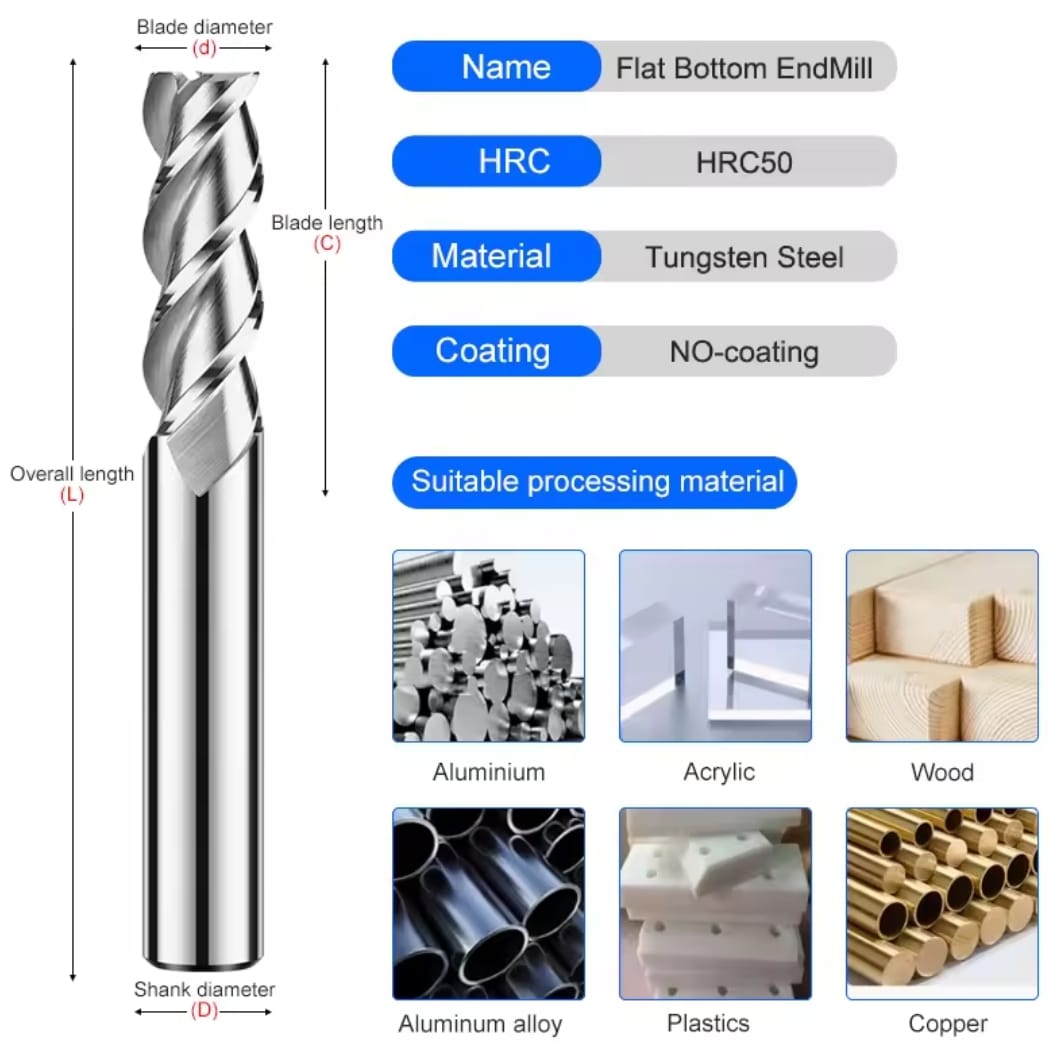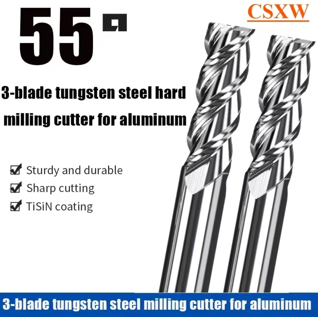 כּרסום קצה 3 להבים מפלדת טונגסטן לאלומיניום 55° CSXW