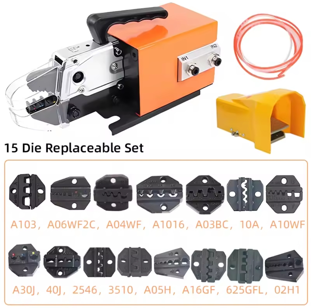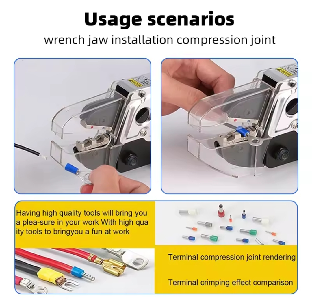 כלי מכונת כריפה ניידת עם 15 יחידות סט מחליפים לכל סוגי הטמינלים של חוטים בגודל 0.25-10mm2