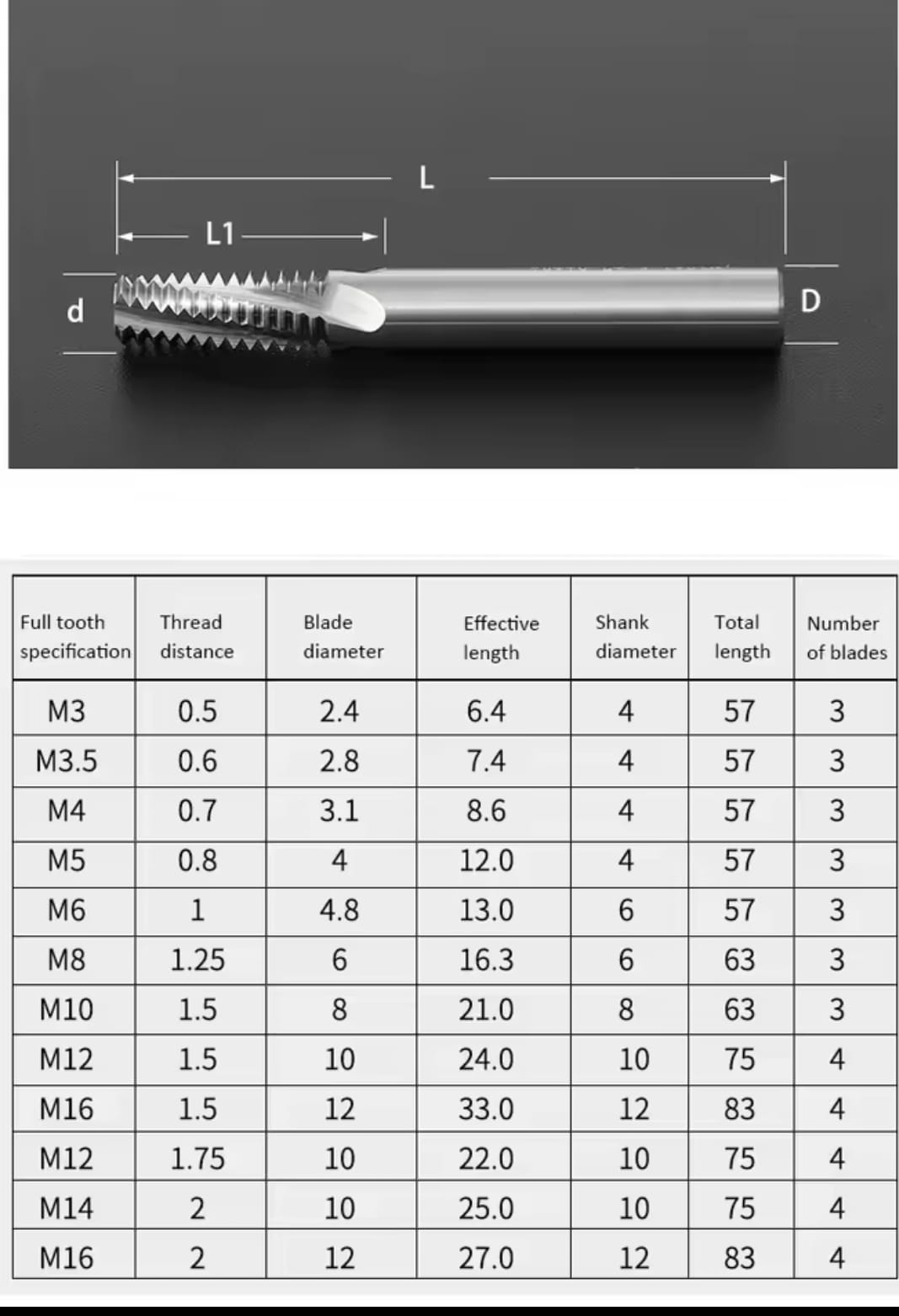 כמות של כרסום להברגות HRC60