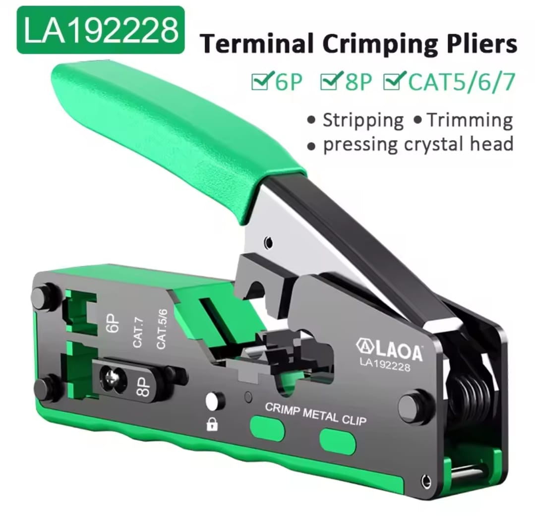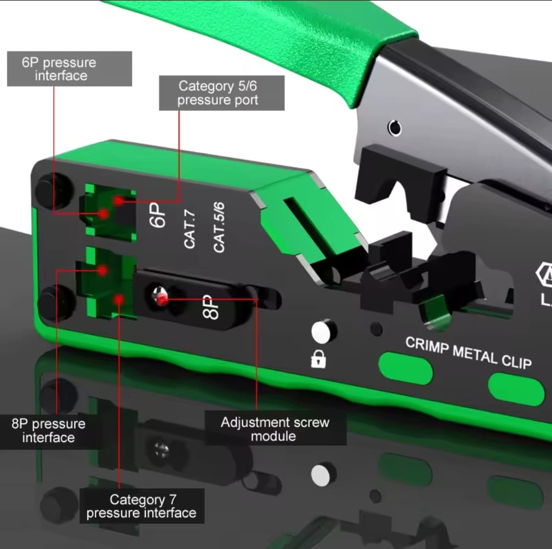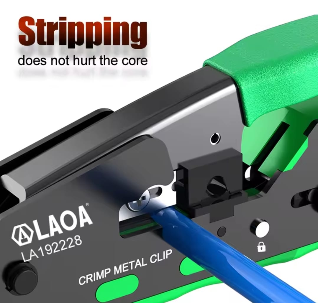 כלי עבודה מקצועי ורב-תכליתי המיועד לחשמלאים וטכנאי תקשורת. המכשיר מאפשר לחיצה מדויקת (Accurate crimp) של ראשי קריסטל, קילוף כבלי רשת וחיתוך חוטים, הכל במכשיר אחד ארגונומי שאינו פוגע בגידים הפנימיים.