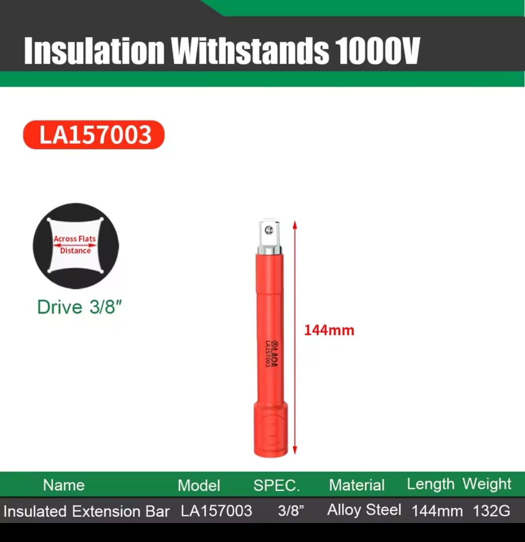סדרת מאריכים מבודדים איכותיים מבית LAOA, המתוכננים לעבודה בטוחה בסביבת חשמל חיה. המאריכים עומדים בתקני בידוד מחמירים של עד 1000V, עשויים מפלדת סגסוגת (Alloy Steel) חזקה במיוחד ומצופים בשכבת הגנה עמידה המגנה על המשתמש מפני התחשמלות.