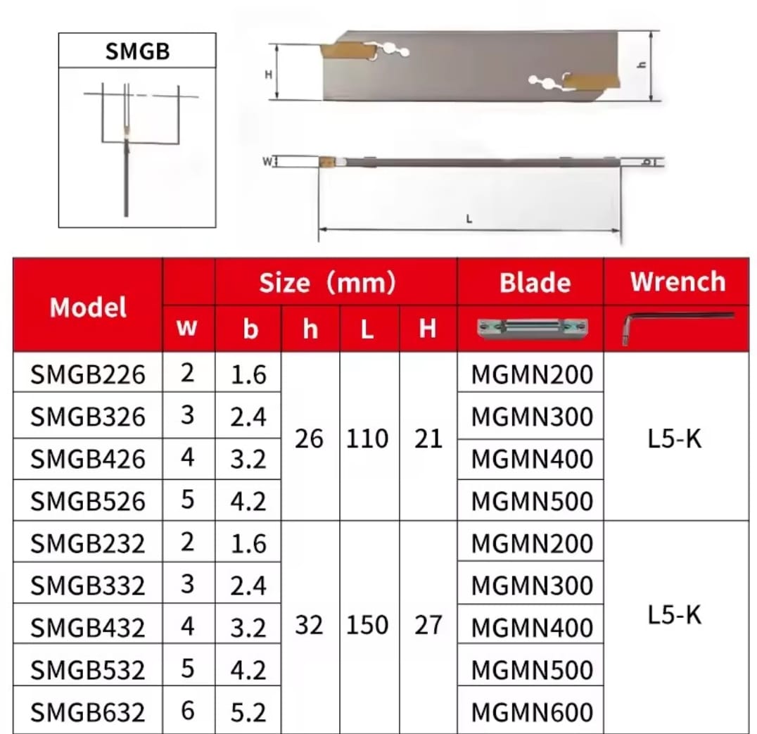 / מחזיק סכין חיתוך לחריצים מסדרת SMBB SMGB לבן, איכותי, תואם להבים מסדרת MGMN/MGGN SMGB26 SMGB32