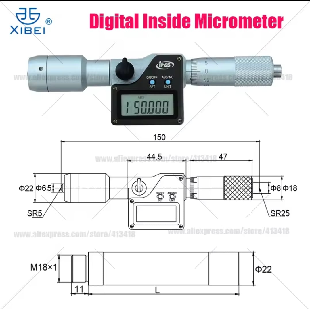 מיקרומטר פנימי Xibei עם תצוגה דיגיטלית מורחבת סוג 337-301 137-205 מיקרו פנימי צינורי 137 139 50-300 50-1500 150-2000 מילימטר