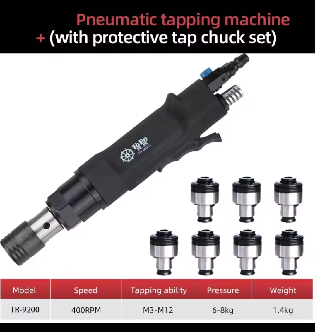 / מכונת הברזה פנאומטית TR-9200 למברזים M3–M12, מהירות 400 סל״ד