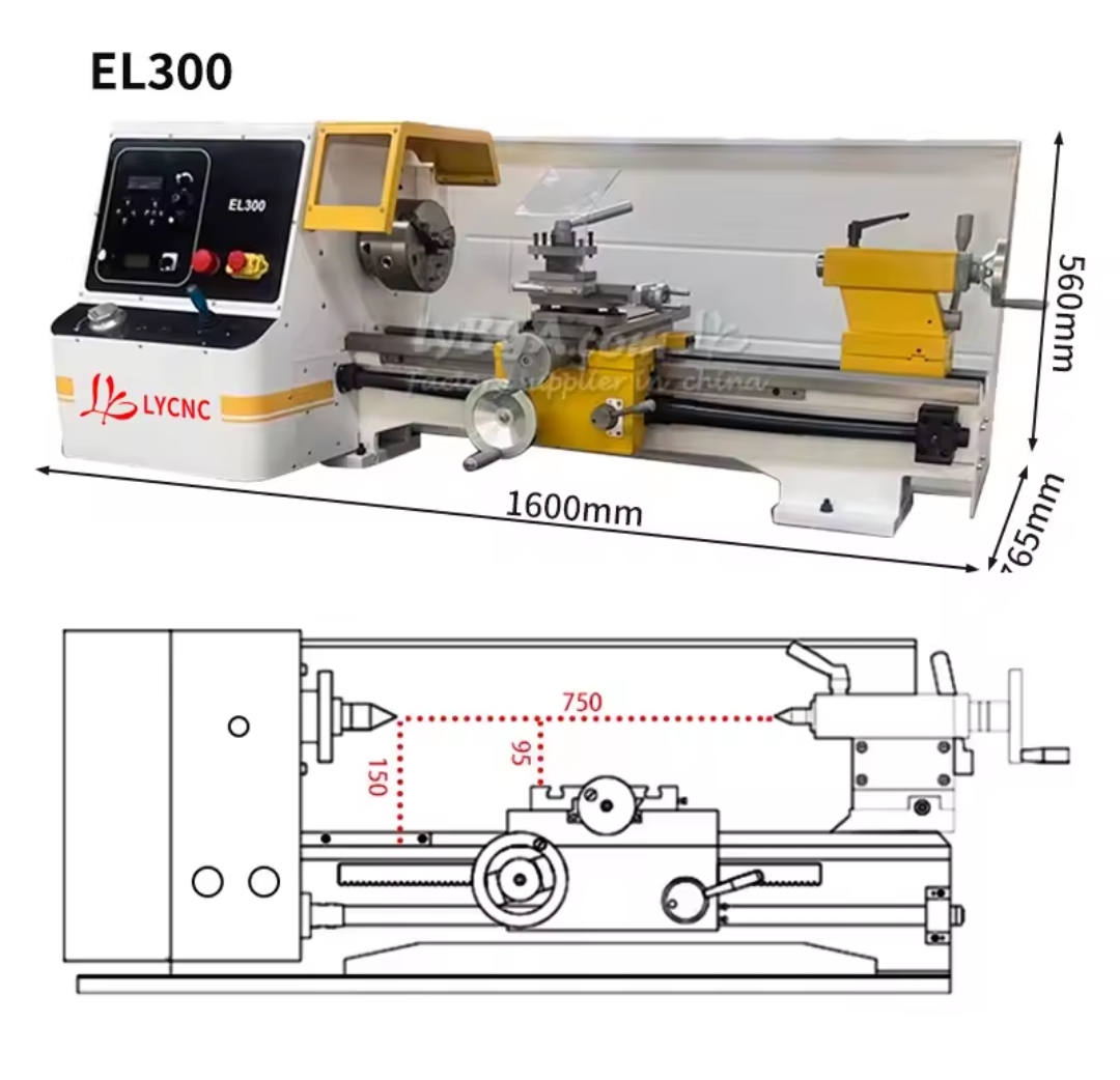 / מכונת טורנינג מתכתית מדויקת לתכנות CNC אוטומטית LY EL300-750mm EL250-550mm עם בסיס לחיתוך וחריטה