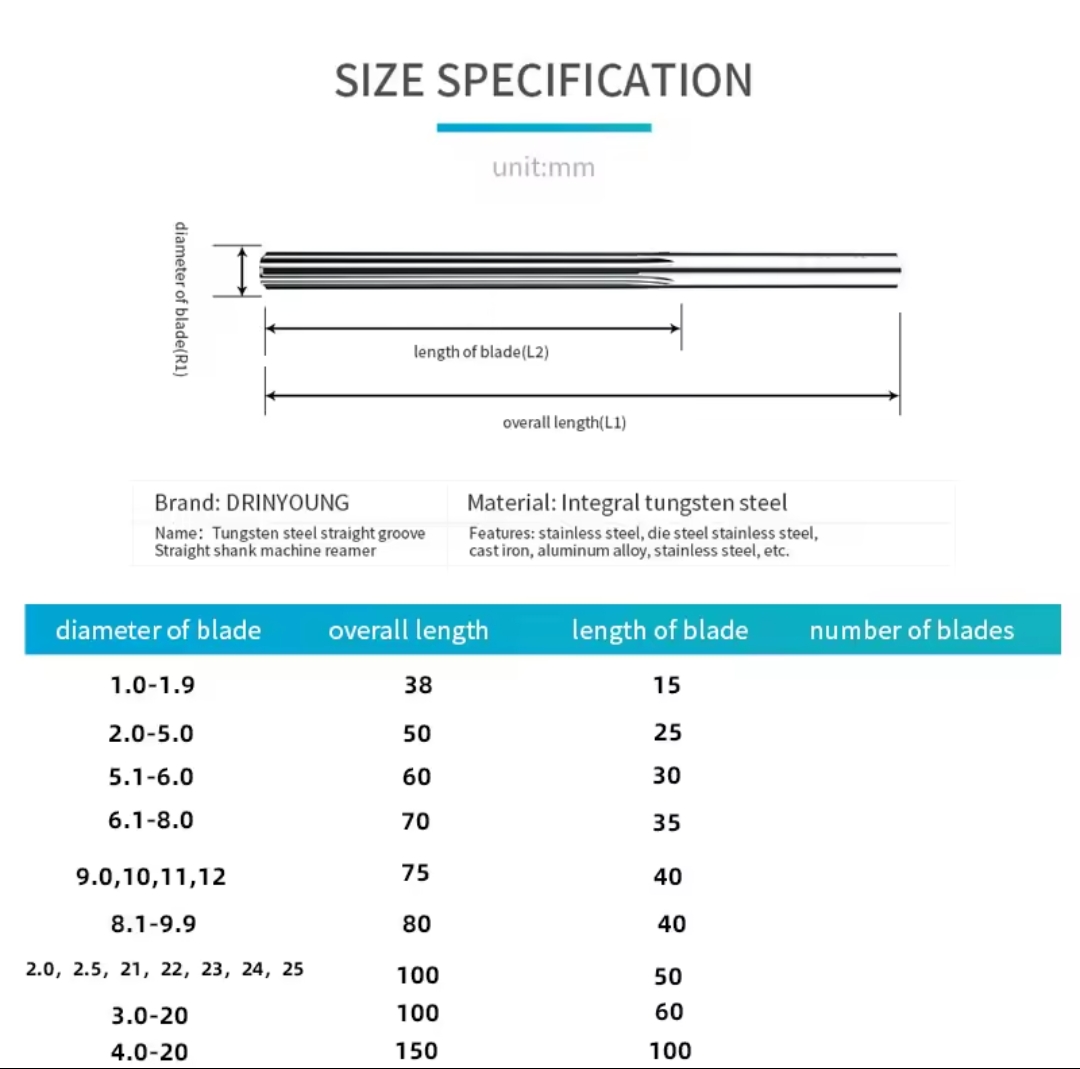 מכונת רימר קרביד DRINYOUNG עבור גרוב ישר אלומיניום מרווח 0.1 כלי CNC 1.0-7.9 מילימטר