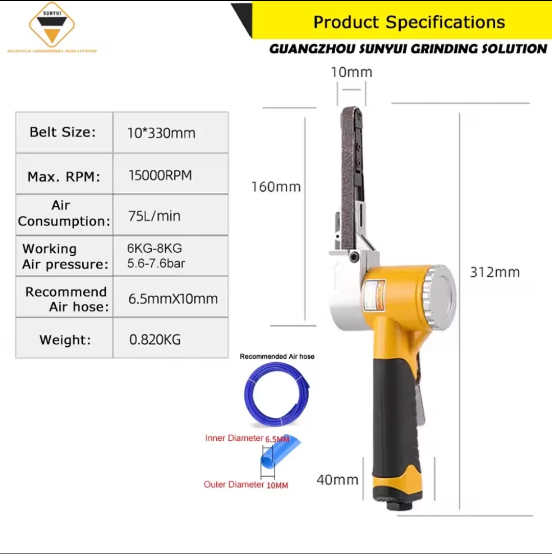 / מכונת שנייה אווירית פנאומטית לשחזור חגורה בגודל 3/8 אינץ' לפרופיל 10×330 מילימטר עם גלגל מתכת קשה להתקנה באזור