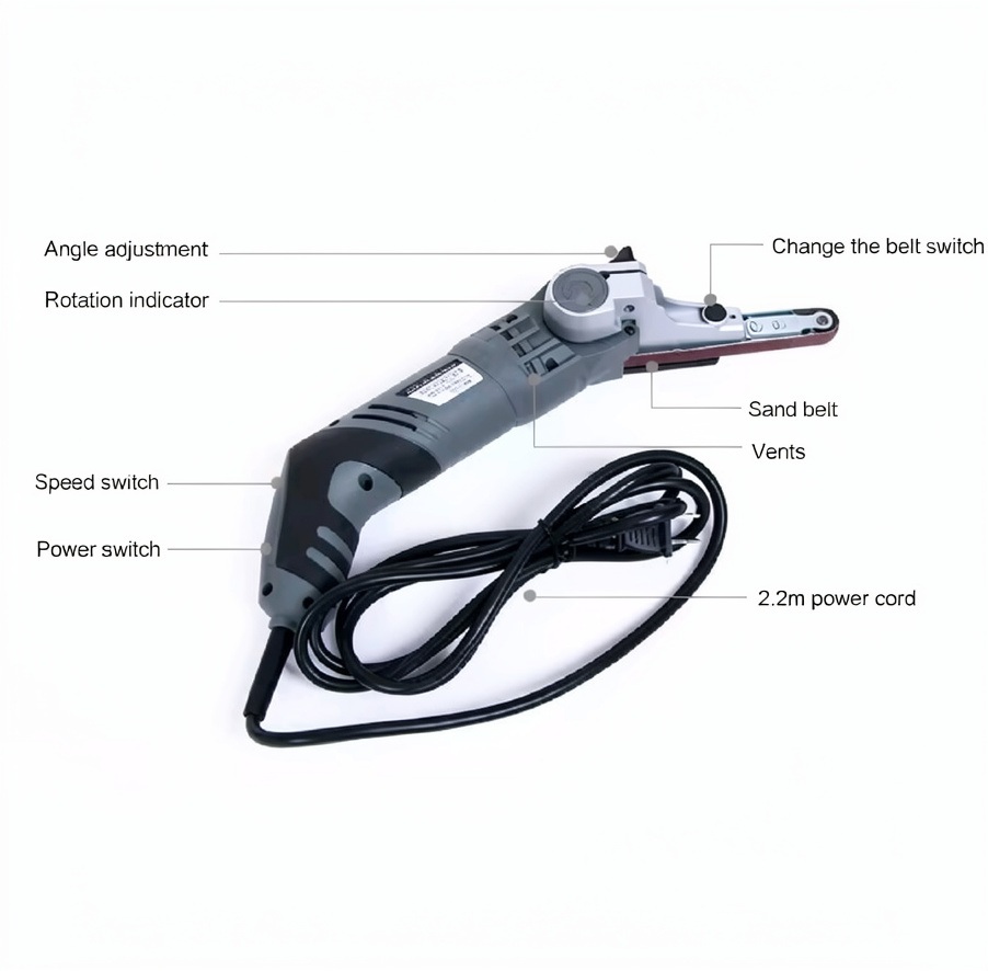 מכונת שנייה חשמלית ניידת בעוצמה של 260W עם 6 מהירויות, כלי עבודה לשטיפה ולשיפור עם 3 רצועות אברסיביות 220V