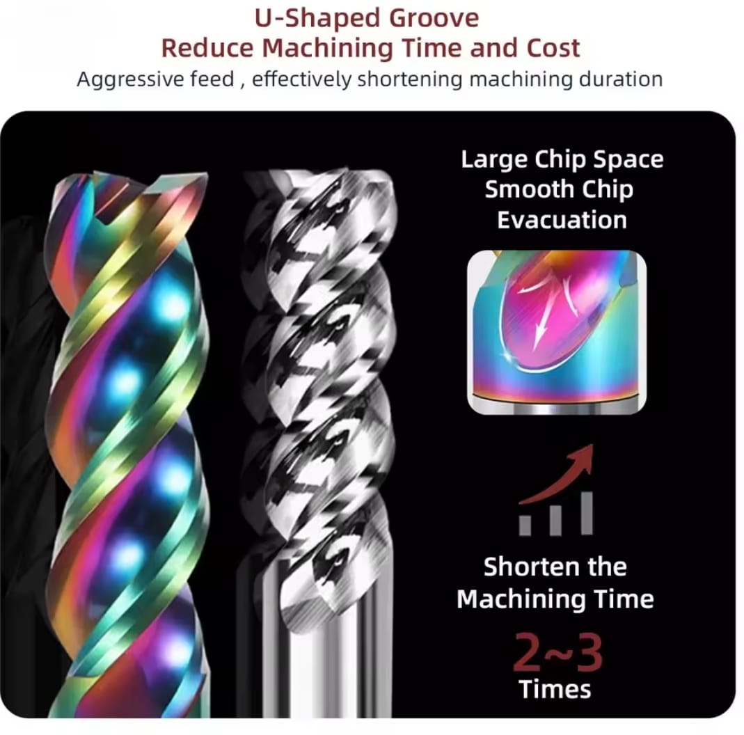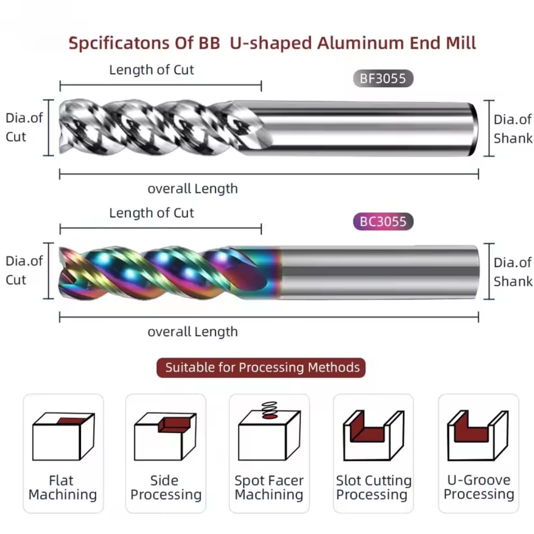 מסור קצה SIQICNC 3F 3 פלוטות מסור אלומיניום CNC כלי עיבוד ביצועים גבוהים מקרביד טונגסטן מצופה DLC