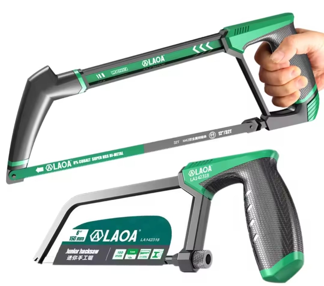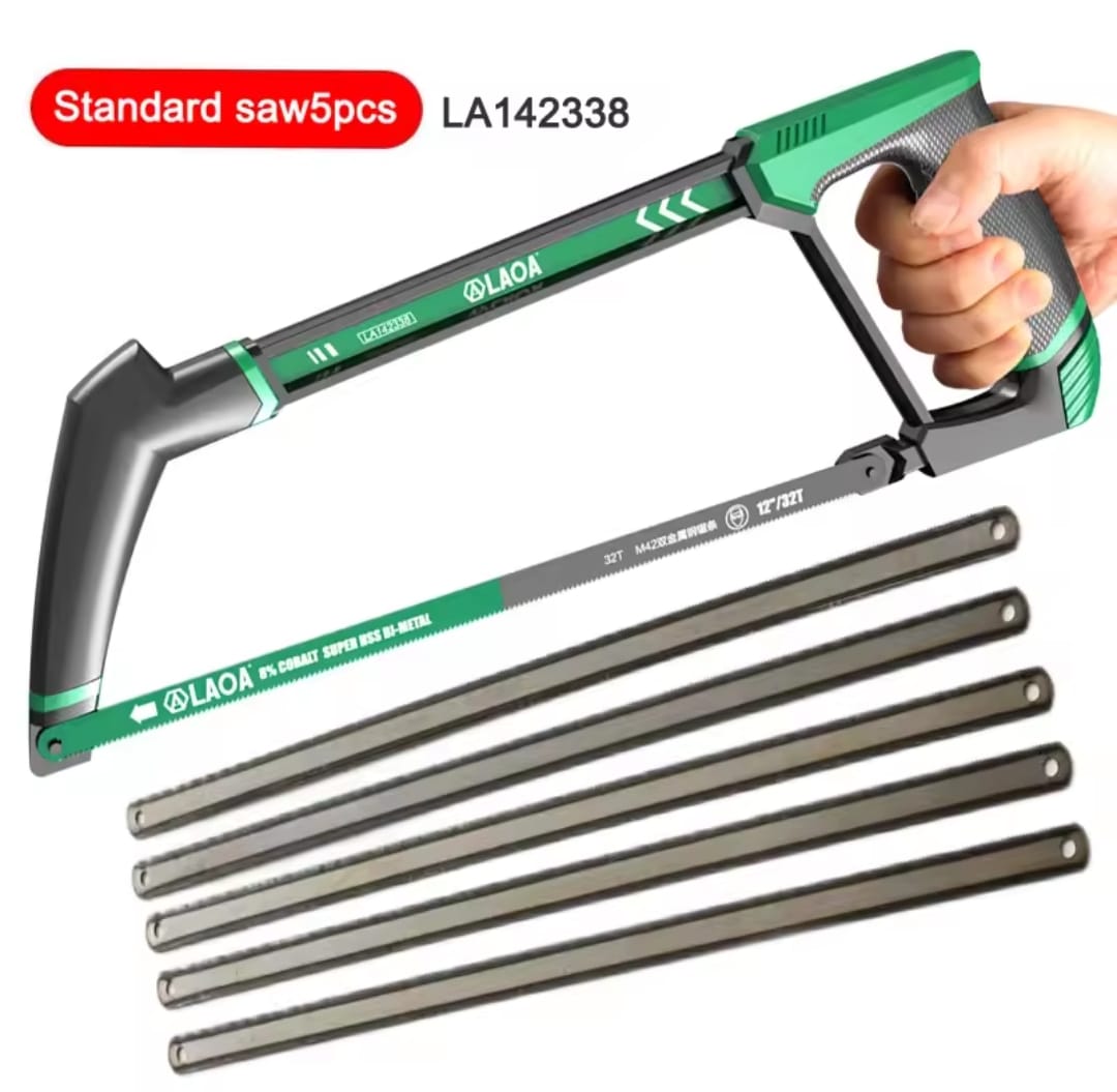 מסור קשת (Hacksaw) עוצמתי בגודל סטנדרטי, המתוכנן לחיתוך מהיר ומדויק של מתכות קשות, פלסטיק ועץ. המסור מצויד בלהב M42 Bi-metal המכיל 8% קובלט, המעניק עמידות קיצונית בחום ואורך חיים גבוה משמעותית מלהבים רגילים.