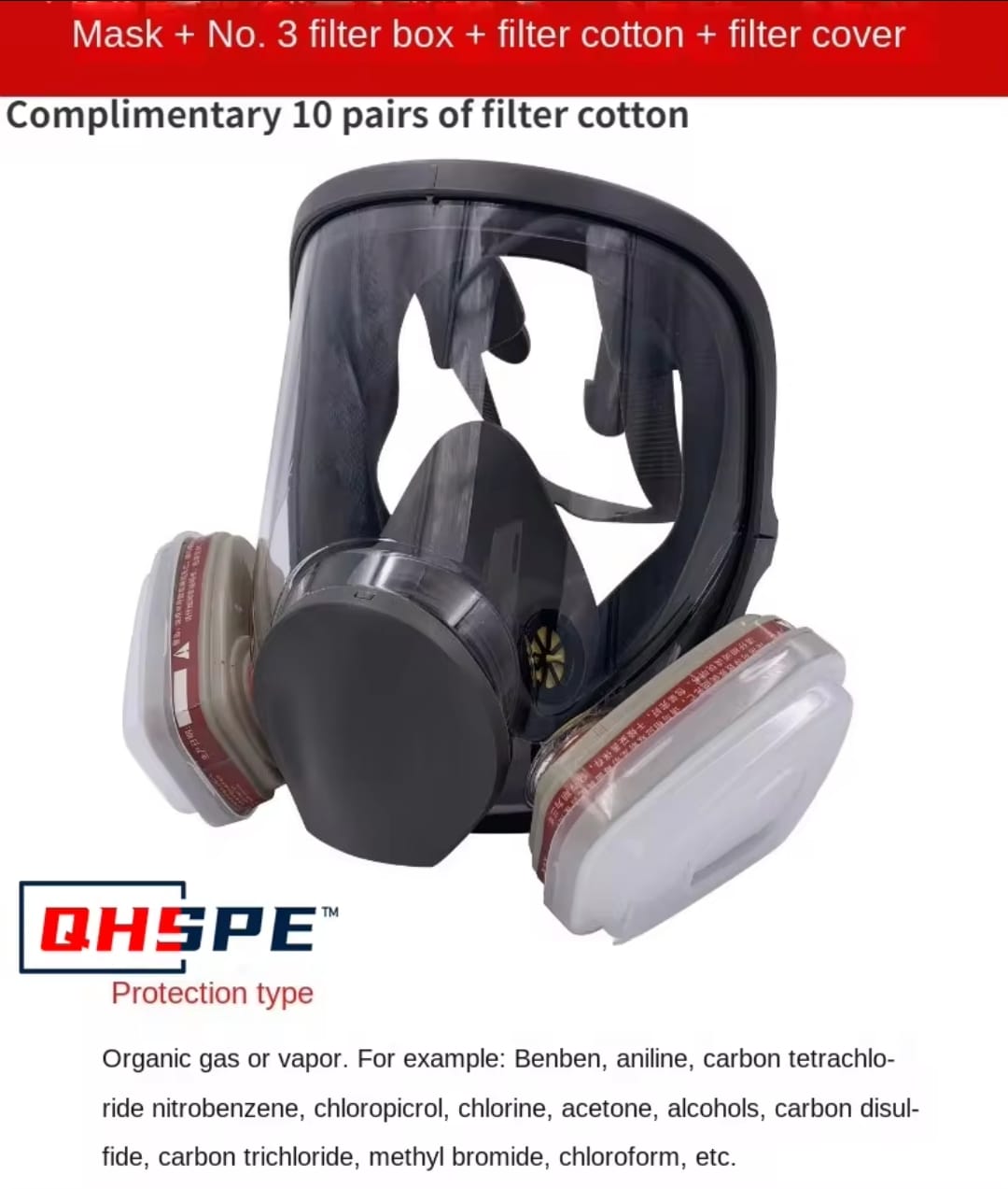 / מסכת הגנה פנורמית מלאה QHSPE להגנה מפני גזים אורגניים ואדים רעילים