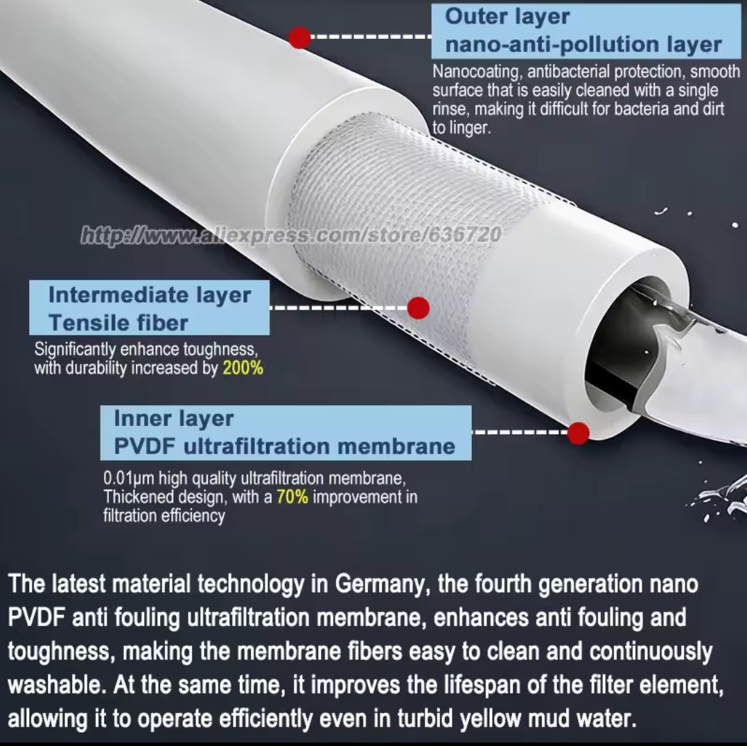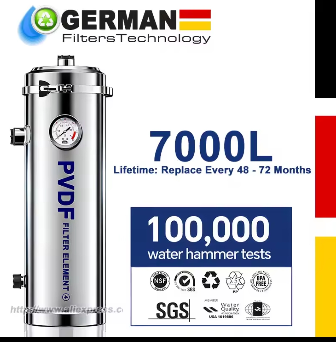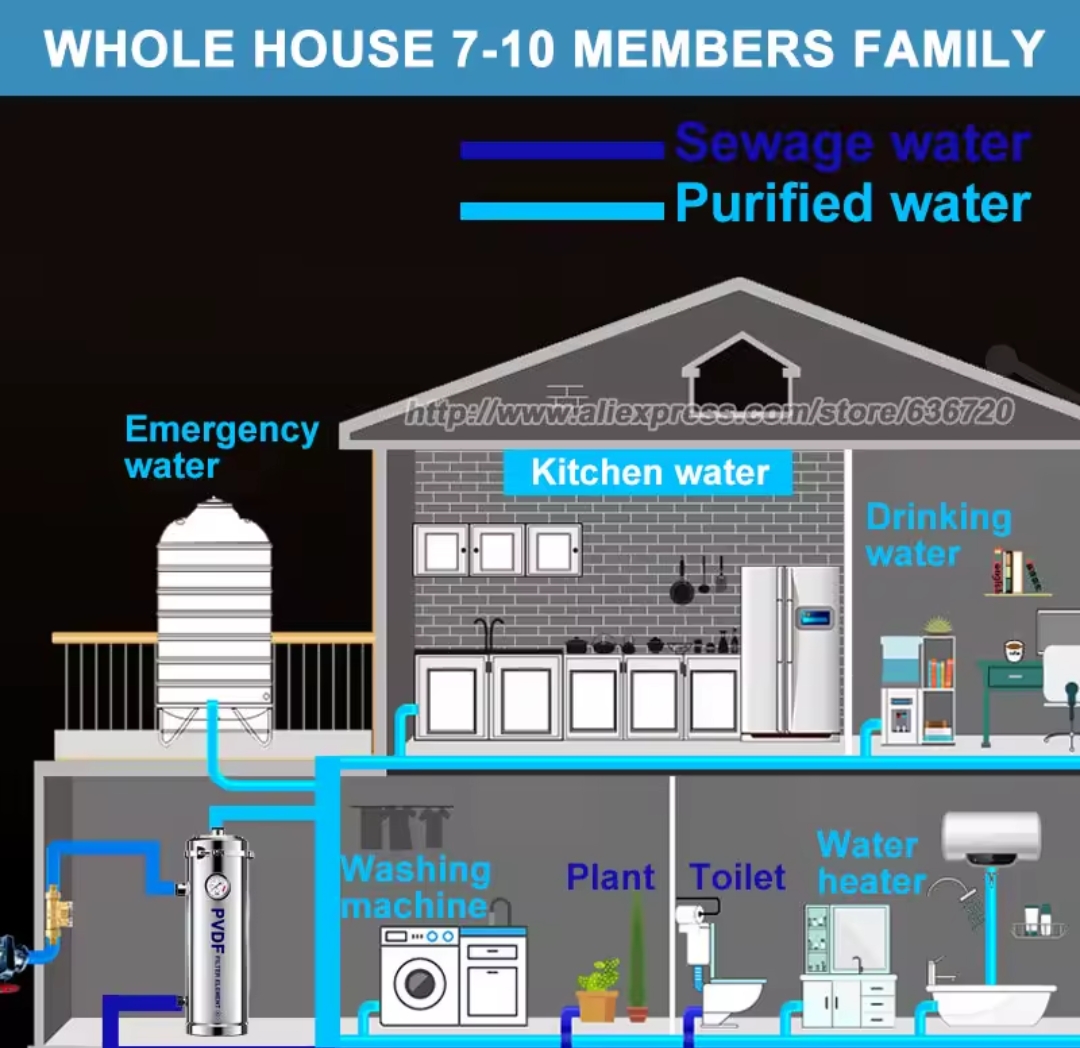 / מערכת טיהור מים בעלת זרימה גבוהה לכל הבית, מסנן מים מינרליים מנירוסטה 7000 ליטר, PVDF לשימוש חוזר מחזיק מעמד מעל 4-6 שנים