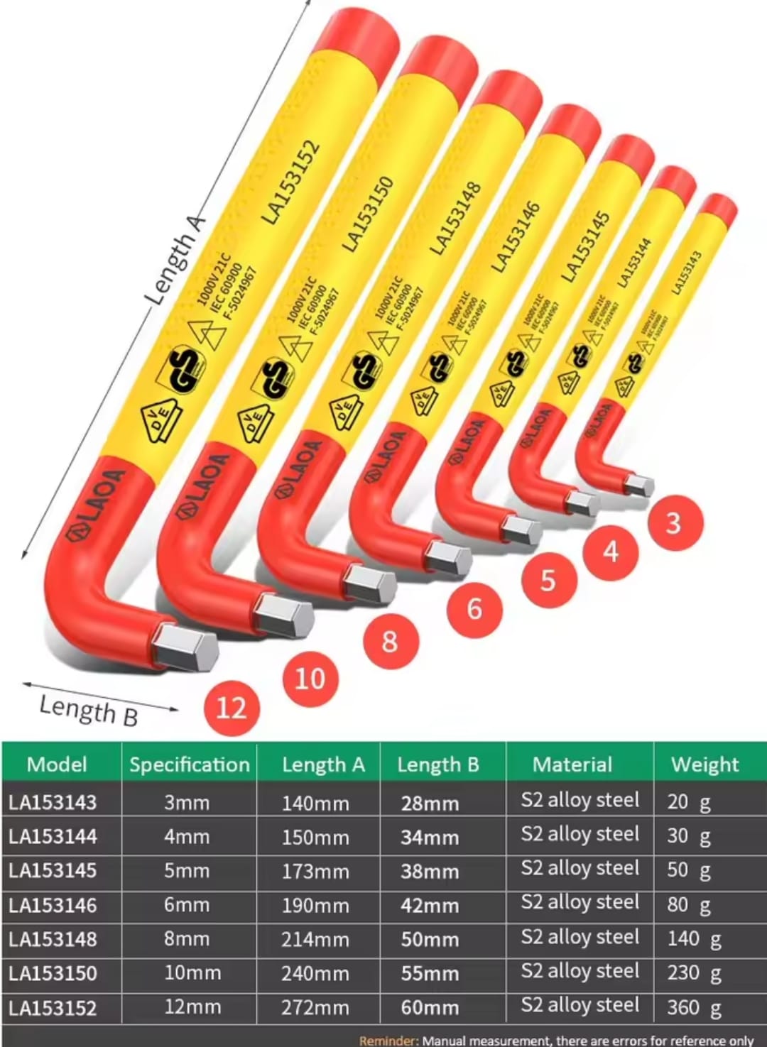 מפתח אלן בצורת L מבודד בתקן VDE עד 1000V