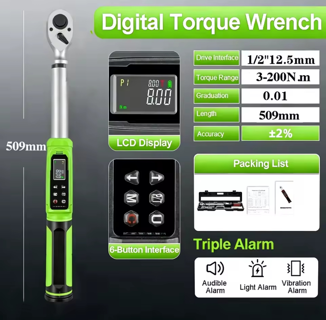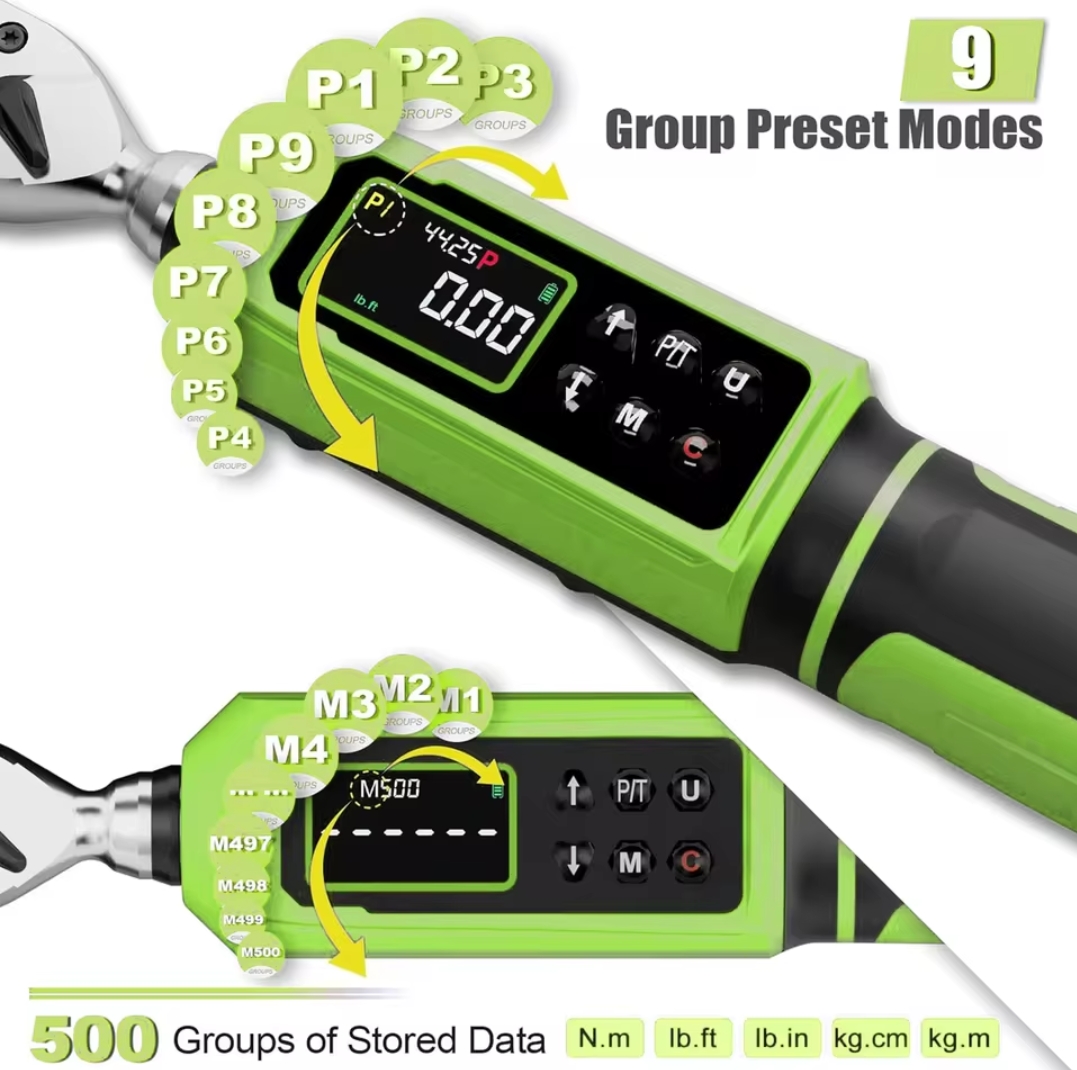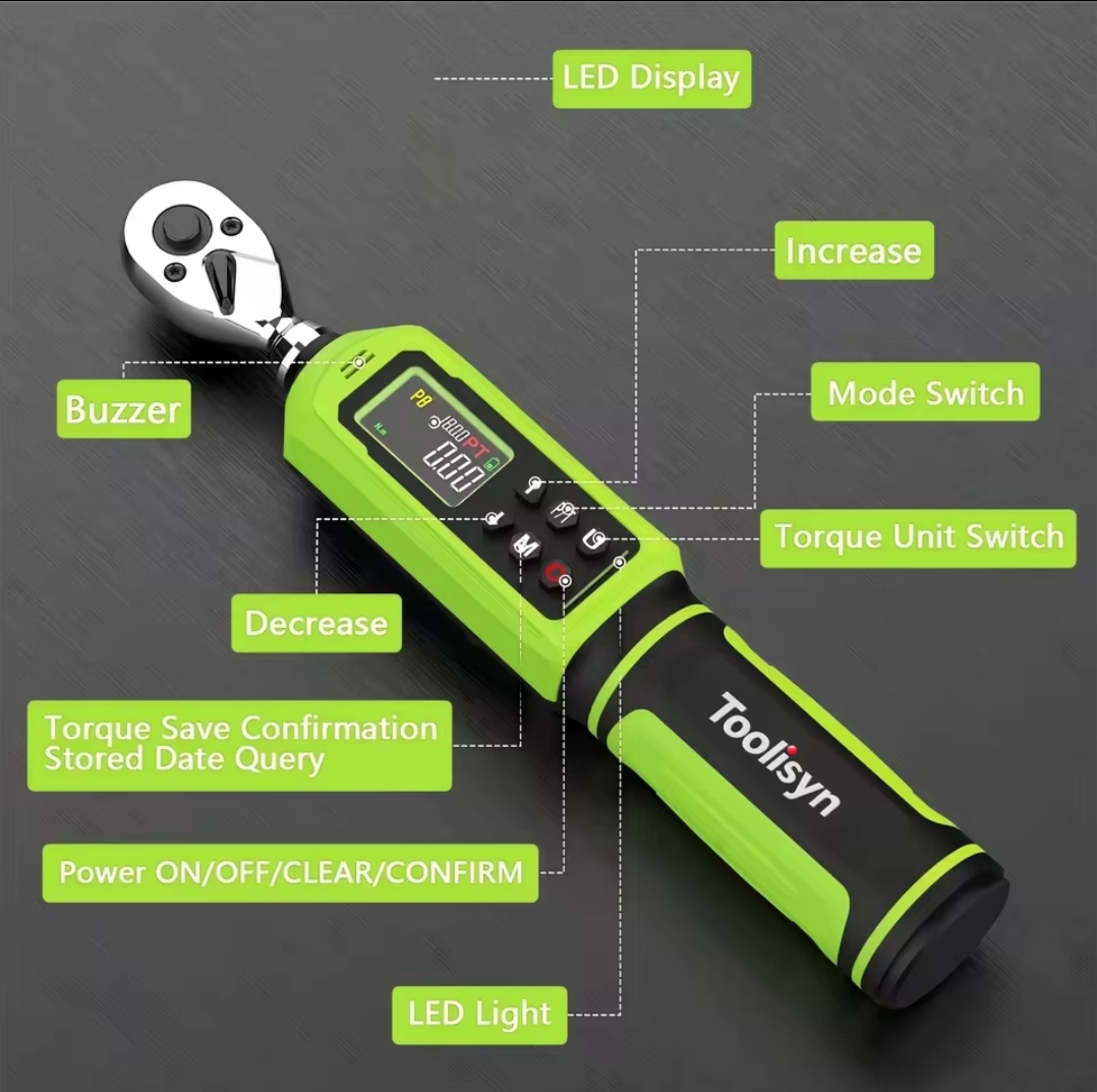 / מפתח מומנט דיגיטלי של Toolisyn 1/4 3/8 1/2 אינץ' 0.15-340Nm ±2% דיוק 5 יחידות עם אזעקות מרובות לאופניים, אופנוע ומכונית
