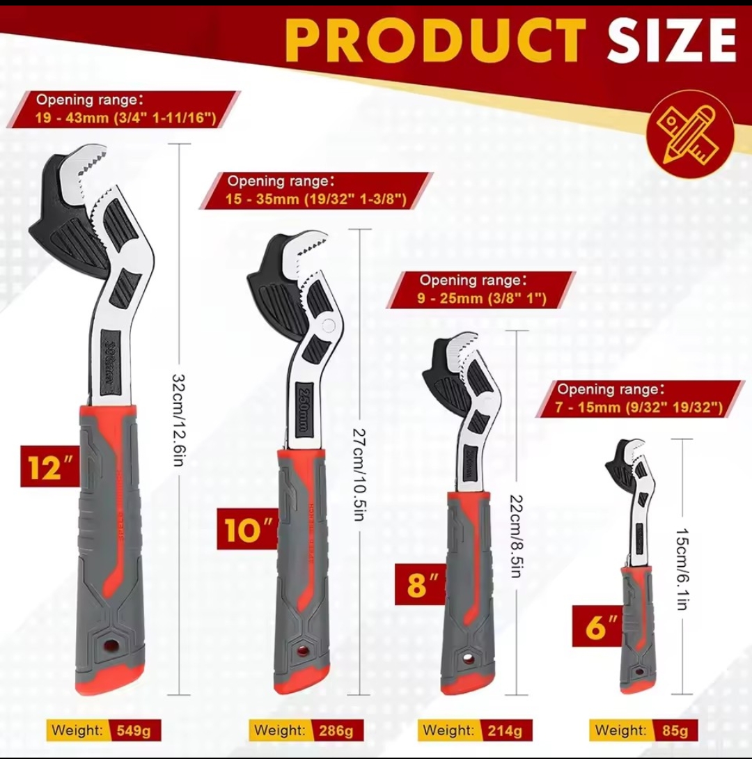 רב-שימושיות: מתאים לברגים מרובעים, משושים ואפילו צינורות עגולים.