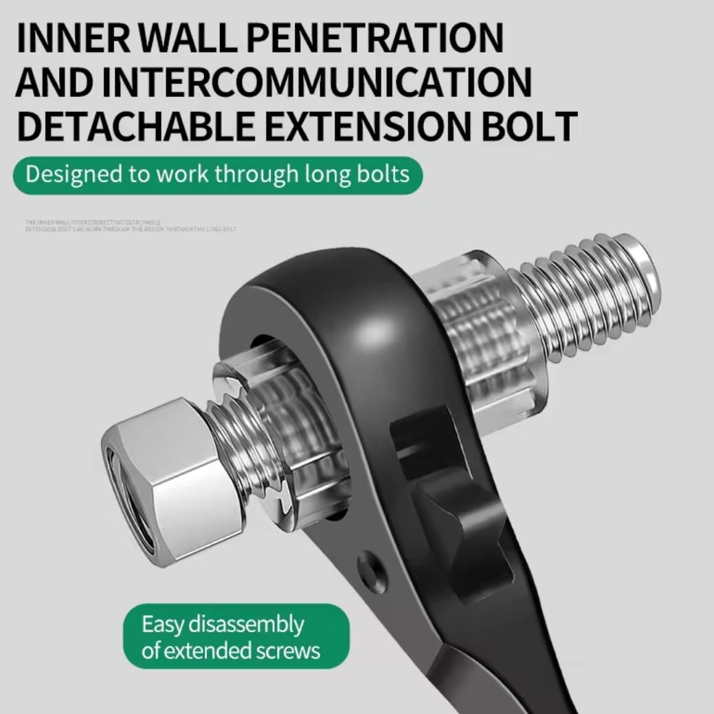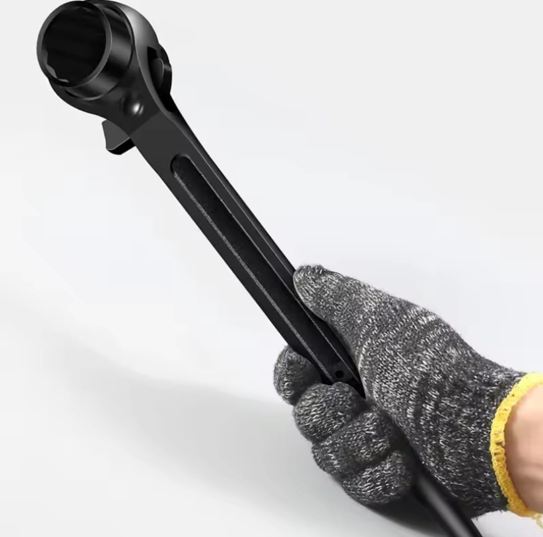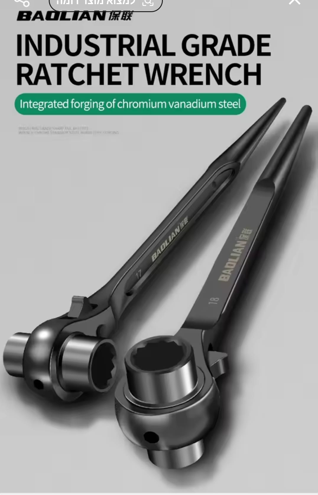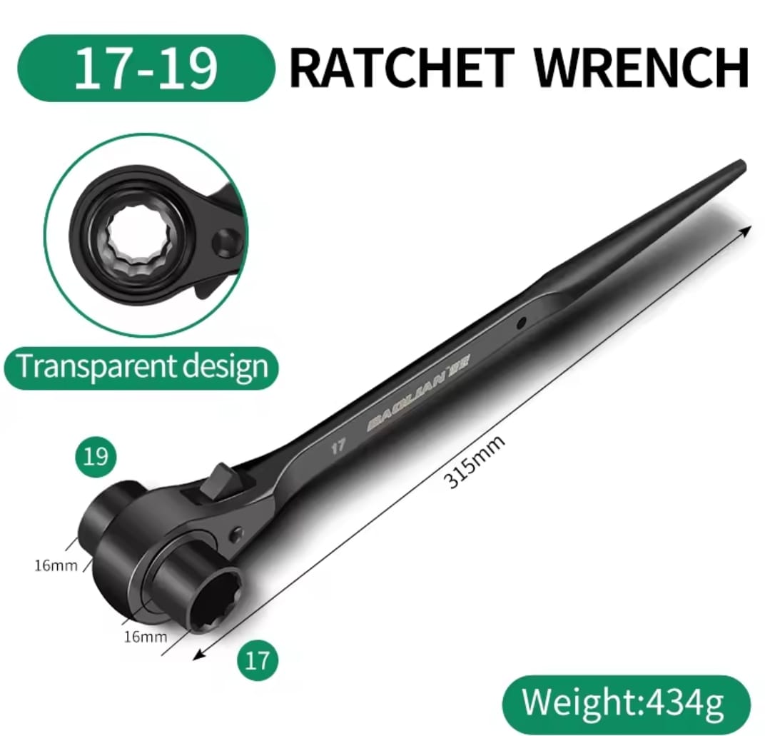 מפתח רצ'ט דו-צדדי עוצמתי מבית BAOLIAN, המשלב שתי מידות בוקסה בכלי אחד עם עיצוב "זנב מחודד" ייחודי. הכלי מיוצר מפלדת כרום-ונדיום (CR-V) בחישול מדויק, ומיועד לעבודות הדורשות מומנט גבוה, יישור חורים והידוק מהיר בתנאי שטח קשים.