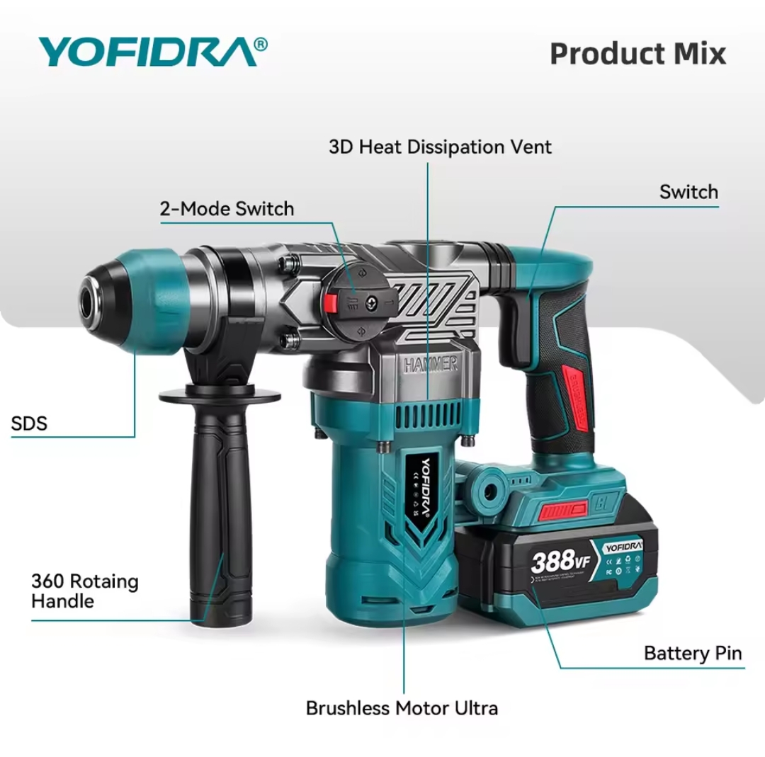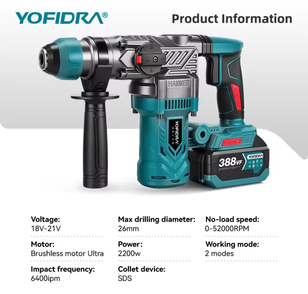 מקדחה חשמלית ללא מברשת בעלת פטיש השפעה, מברגה אלחוטית עם כלי רוטטים לסוללת מקיטה 18V