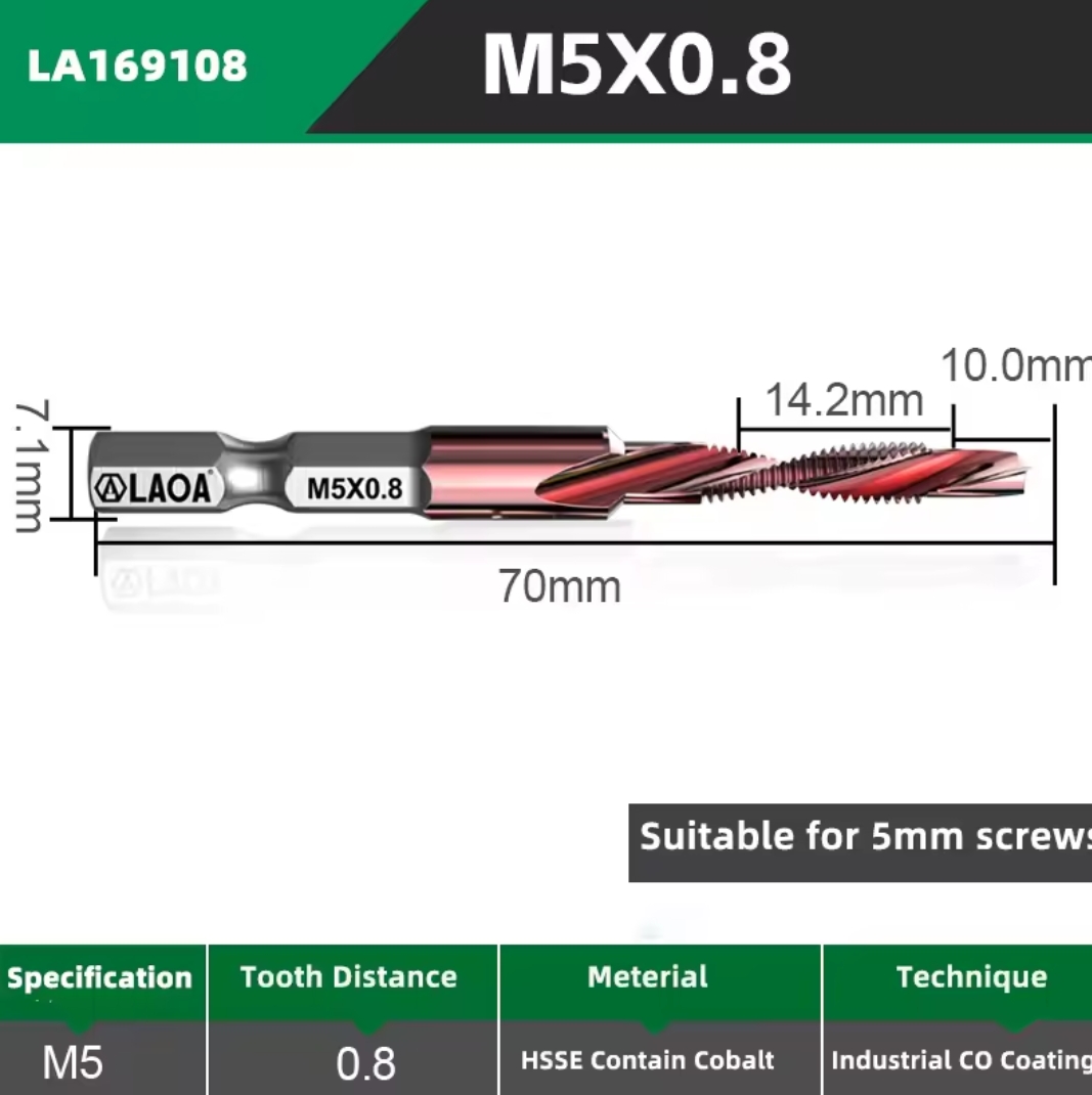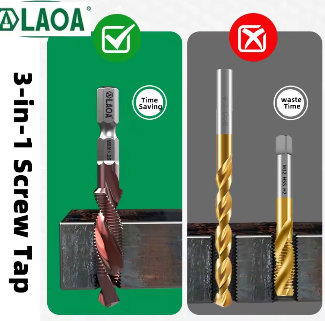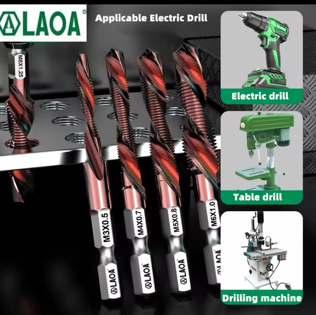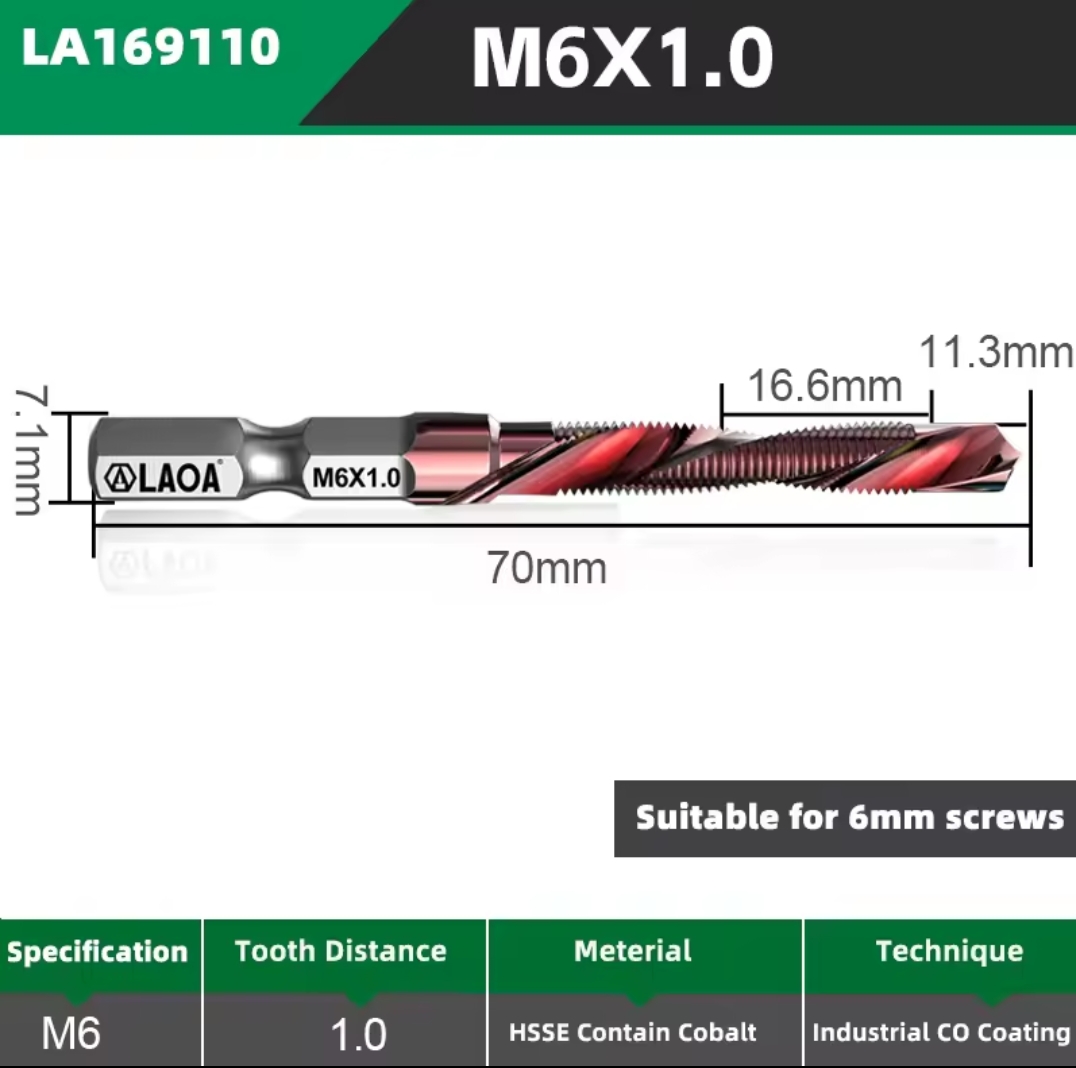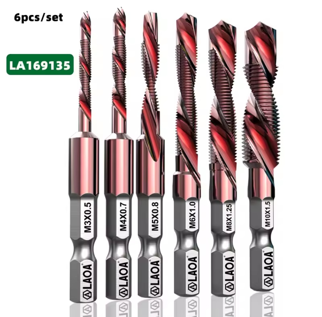 מקדח הברגה LAOA 1/6 יחידות עם ידית משושה, מכיל קובלט HSS, מקדח הברגה למכונה, מקדח הברגה מורכב M3 M4 M5 M6 M8 M10, כלי ידני
