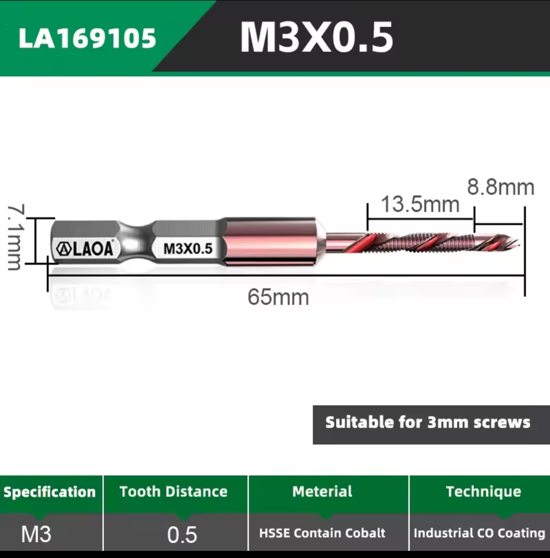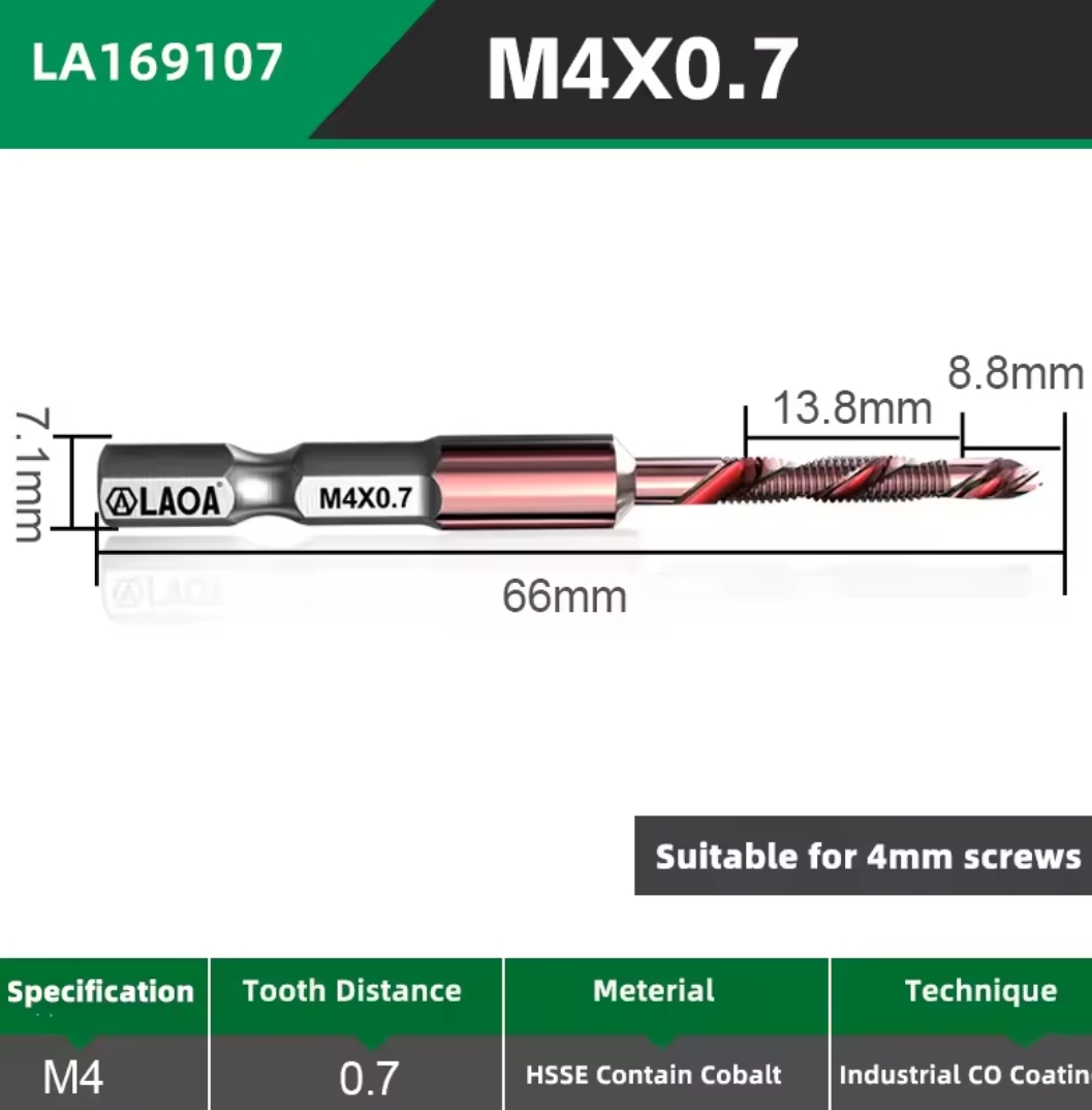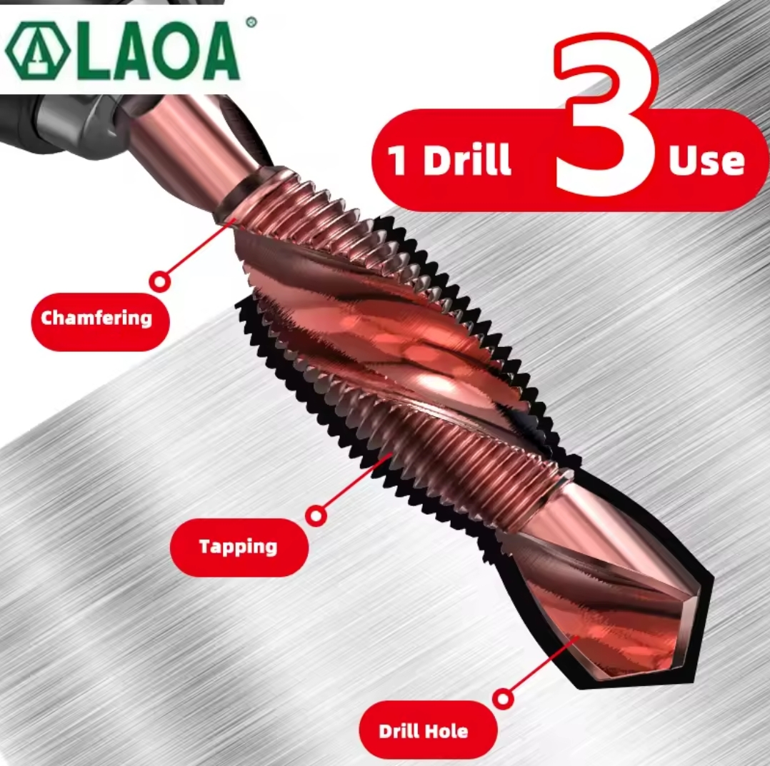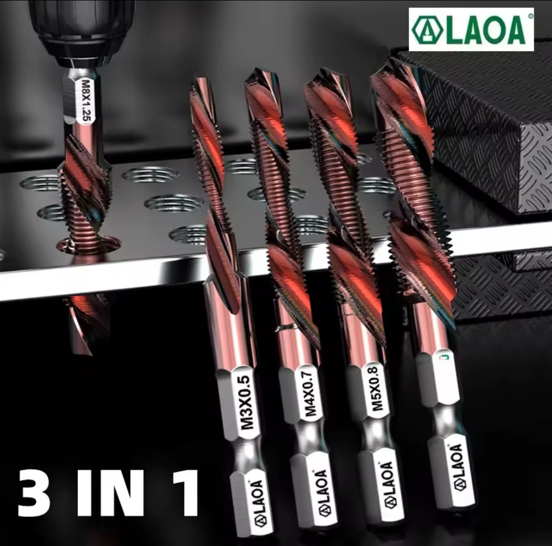 מקדח הברגה LAOA 1/6 יחידות עם ידית משושה, מכיל קובלט HSS, מקדח הברגה למכונה, מקדח הברגה מורכב M3 M4 M5 M6 M8 M10, כלי ידני