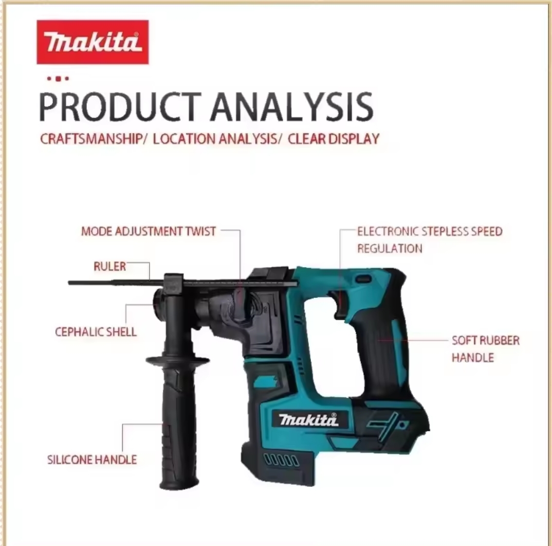 מקיטה פטיש חשמלי ללא מברשות מקיטה 18V פטיש חשמלי אלחוטי 18V סוללת ליתיום מקדחות אלחוטיות כלי עבודה חשמליים