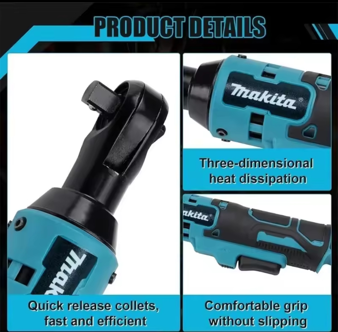 / מקיטה 18V מפתח ברגים בזווית ישרה ללא מברשות, מפתח ברגים אלחוטי במהירות משתנה, כלי חשמלי עם תאורת LED