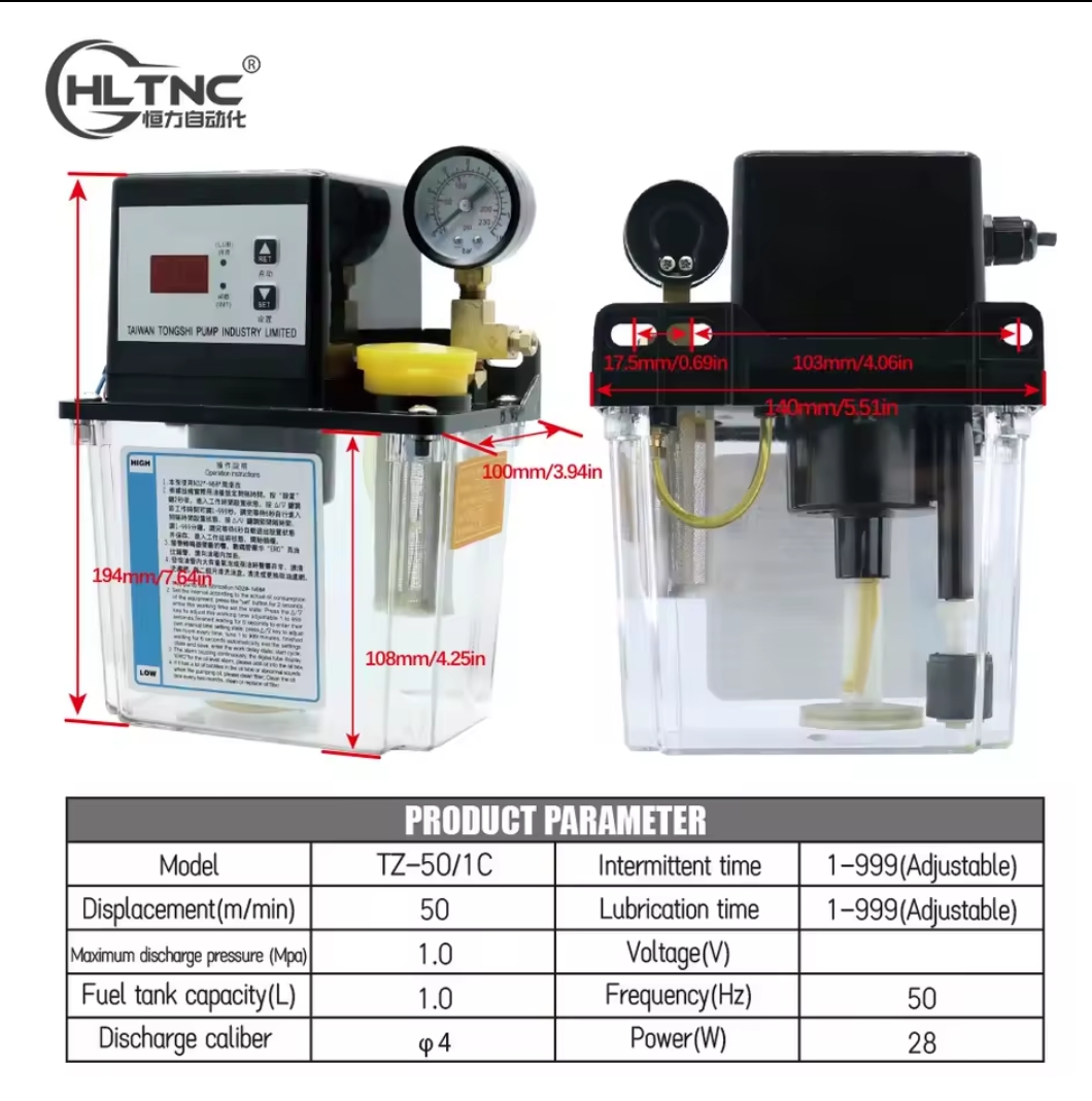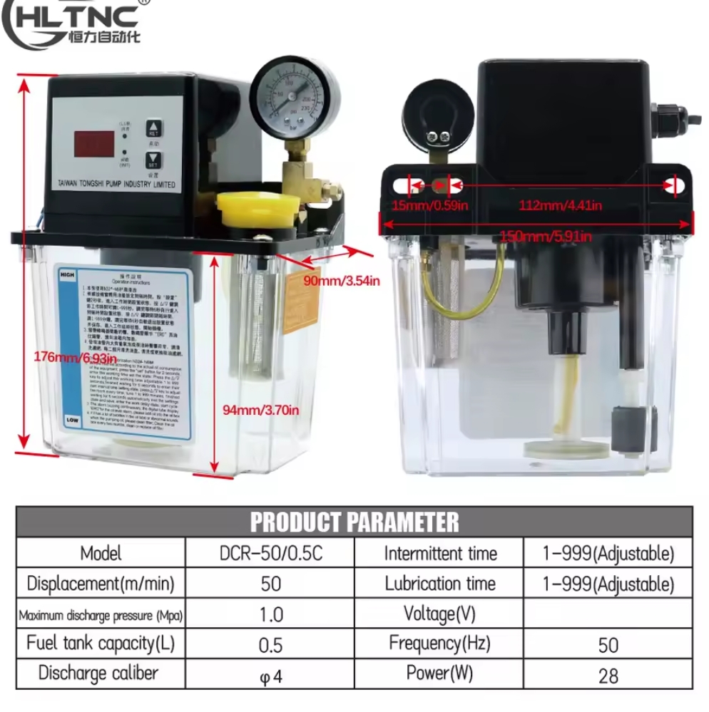 משאבת שמן לחות אוטומטית אלקטרומגנטית HLTNC 110V 220V עם מיכל 0.5 1L 2L ומד לחץ עבור מחטב CNC