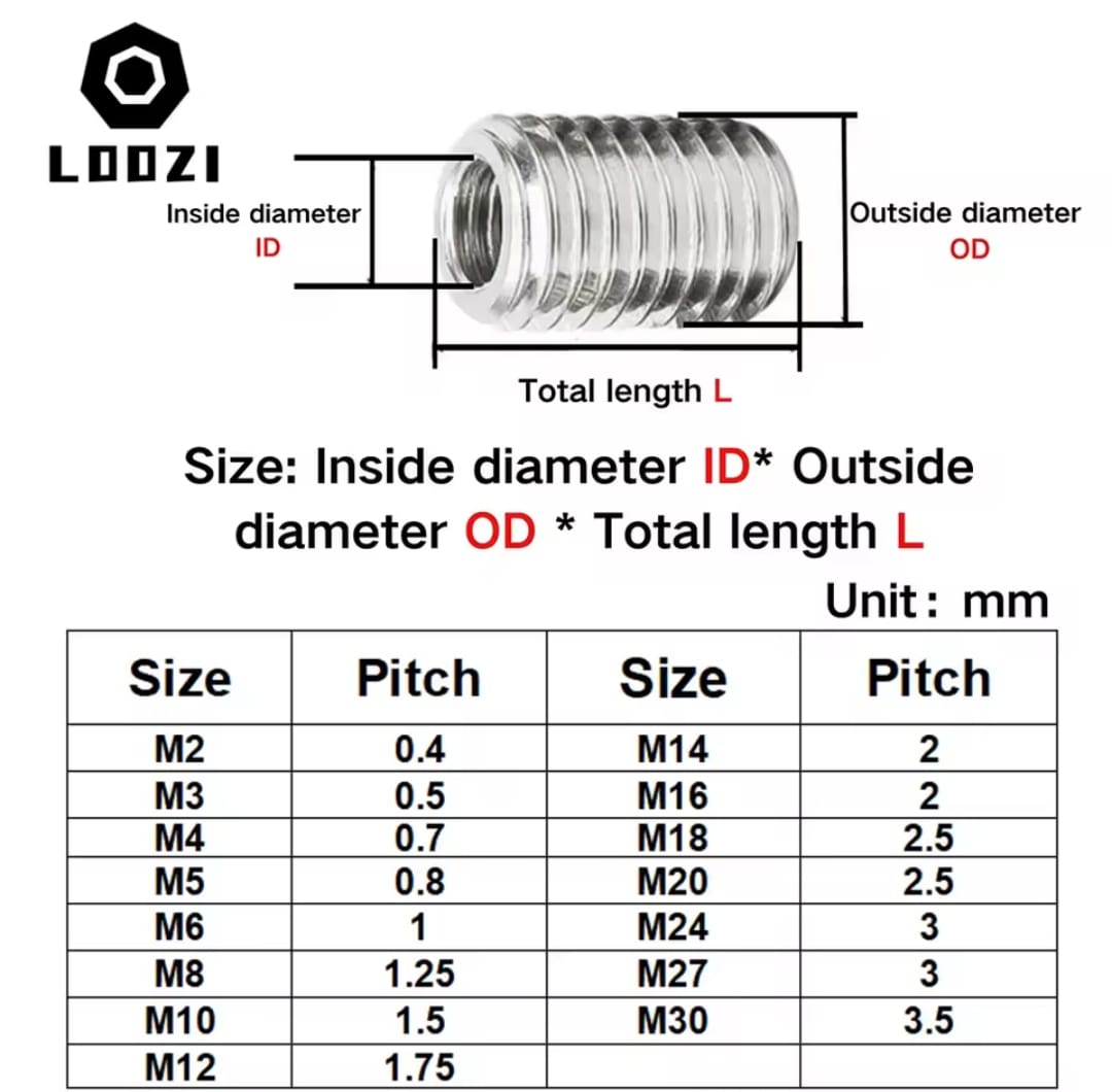 מתאים לחוטים פנימיים וחיצוניים מפלדת נירוסטה 304 בגדלים M2, M2.5, M3, M4, M5, M6, M8, M10, M12, M14, M16