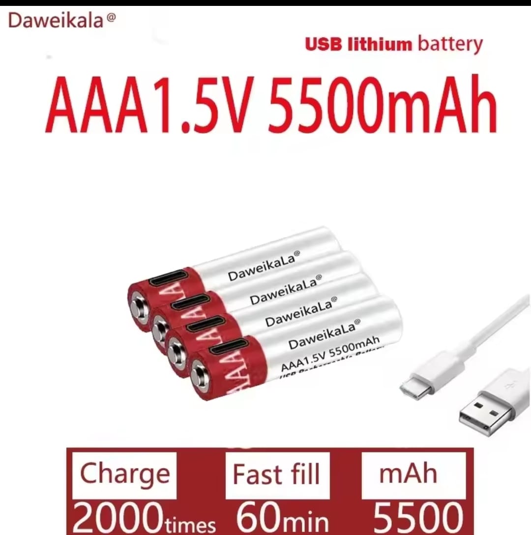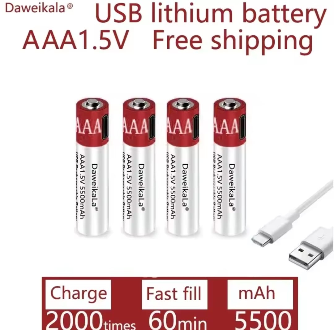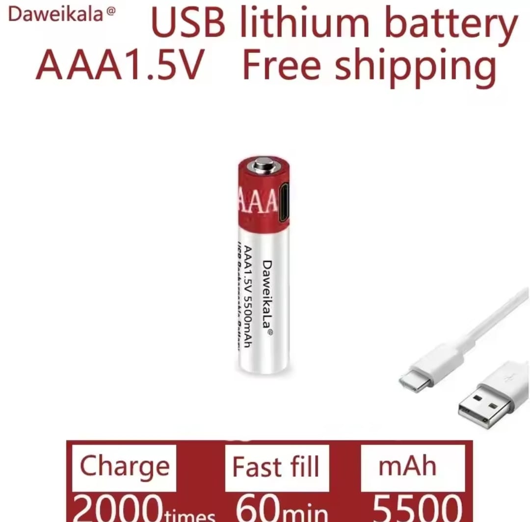 סוללת ליתיום יון נטענת עבור שלט 1.5V AAA 5500mAh USB-C רחוק עכבר אלחוטי+מטען כבלים סוללות בקיבולת גדולה