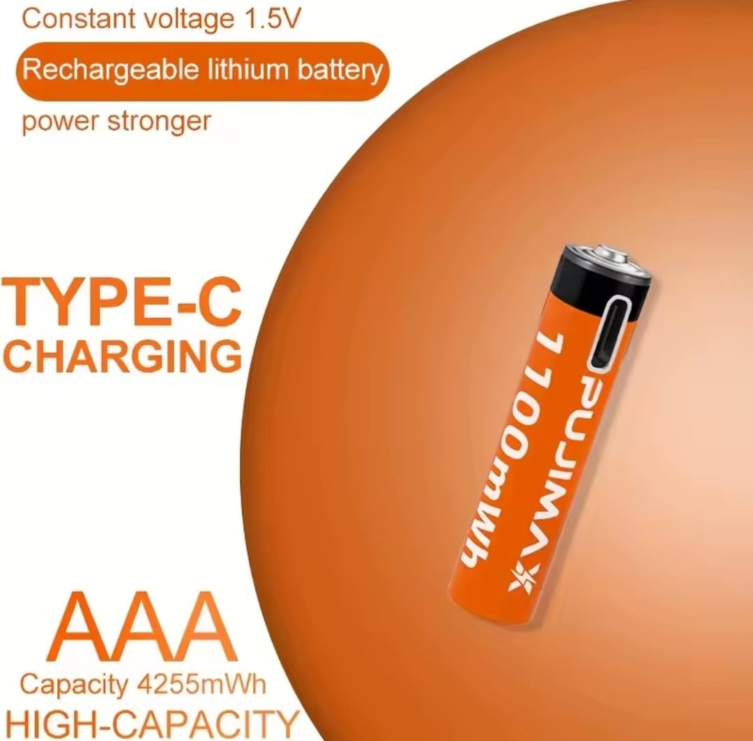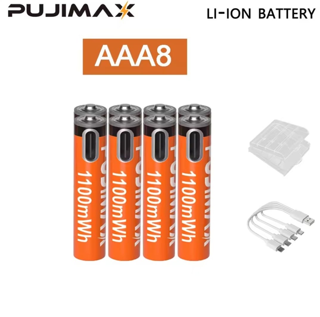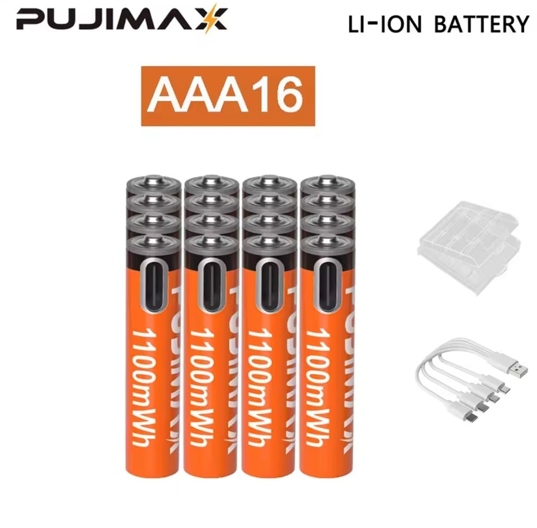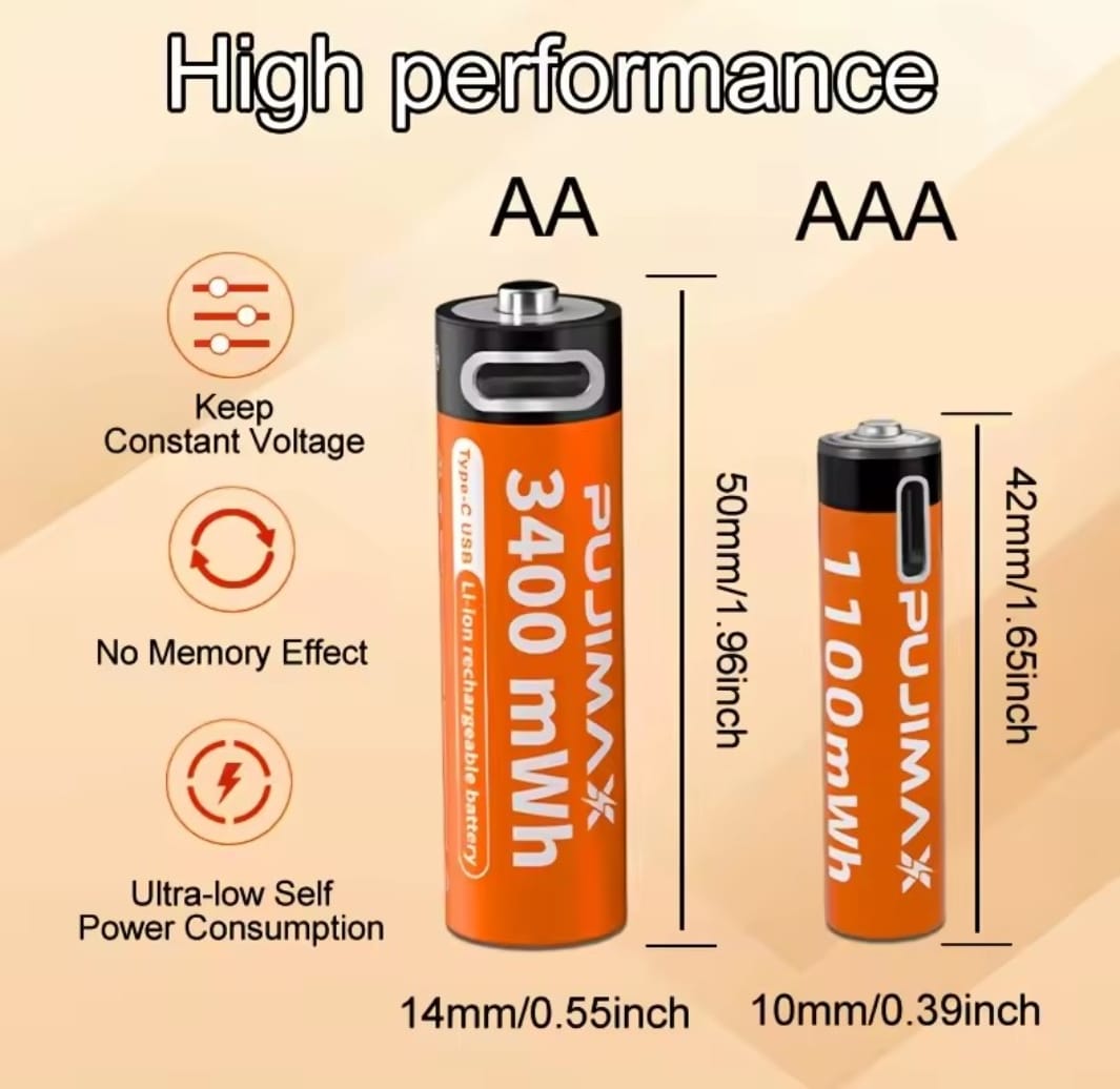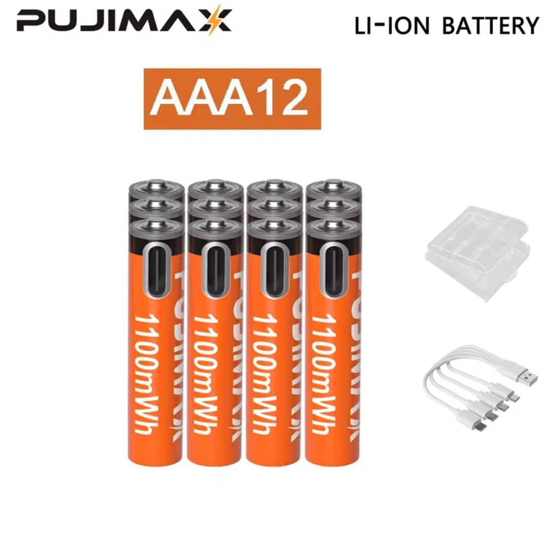 / סוללת ליתיום נטענת PUJIMAX 1.5V AA&AAA 3400mWh/1100mWh, טעינת יציאת Type-C משמשת מחדש 1500 פעמים לשעוני מעורר