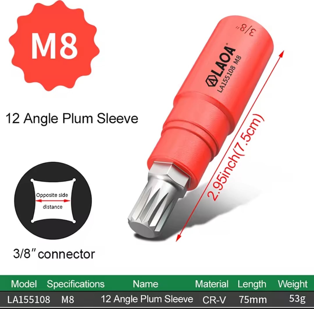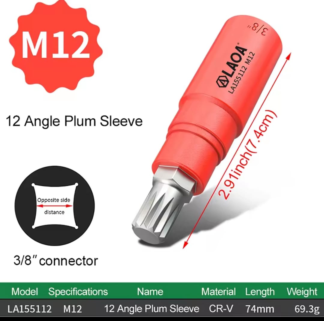 מבנה 12 צלעות (Spline): תוכנן במיוחד לאחיזה מקסימלית בברגים בעלי ראש כוכב רב-צלעות, מה שמונע החלקה ושומר על ראש הבורג שלם.