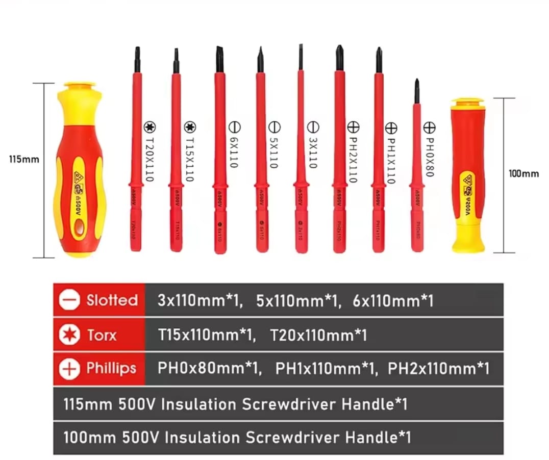 בטיחות מוסמכת: כל מברג נבדק אינדיבידואלית לעמידות במתח גבוה.