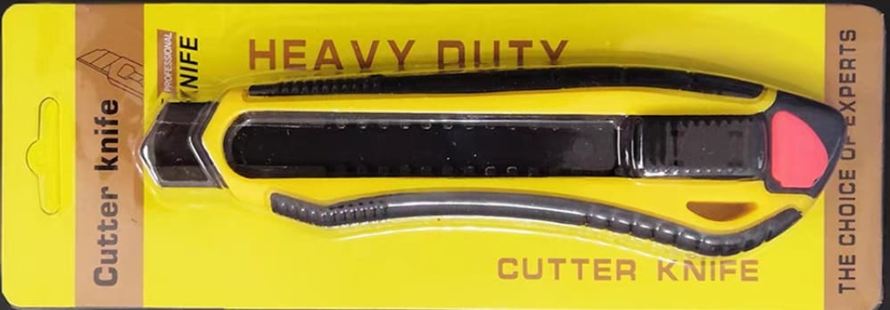 סכין חיתוך מאסיבית המיועדת לעבודות אינטנסיביות, בעלת ידית רחבה המשלבת פלסטיק קשיח וגומי לאחיזה משופרת ומניעת החלקה. כוללת מנגנון נעילה אוטומטי לבטיחות מרבית.