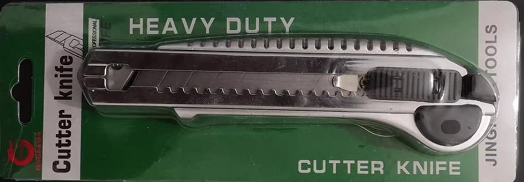 סכין חיתוך תעשייתית בגימור מתכתי יוקרתי ועמיד במיוחד בפני חלודה ושחיקה. מיועדת לעבודות טכניות הדורשות כלי חזק ויציב.