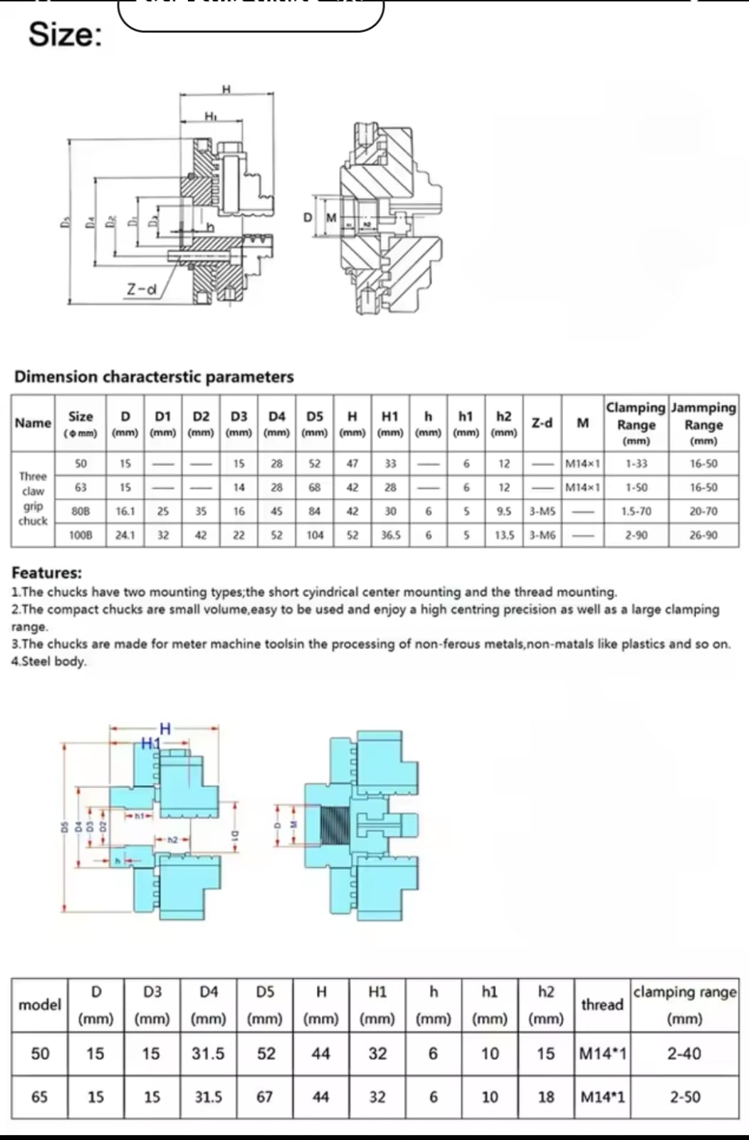 עבור M14*1 מוט חיבור תלת לסתות CSZJ K01-50 כלים מיני עשה זאת בעצמך מיני מרכזים K01-50/63/80/100 עצמיים למחרטת עץ מתכת