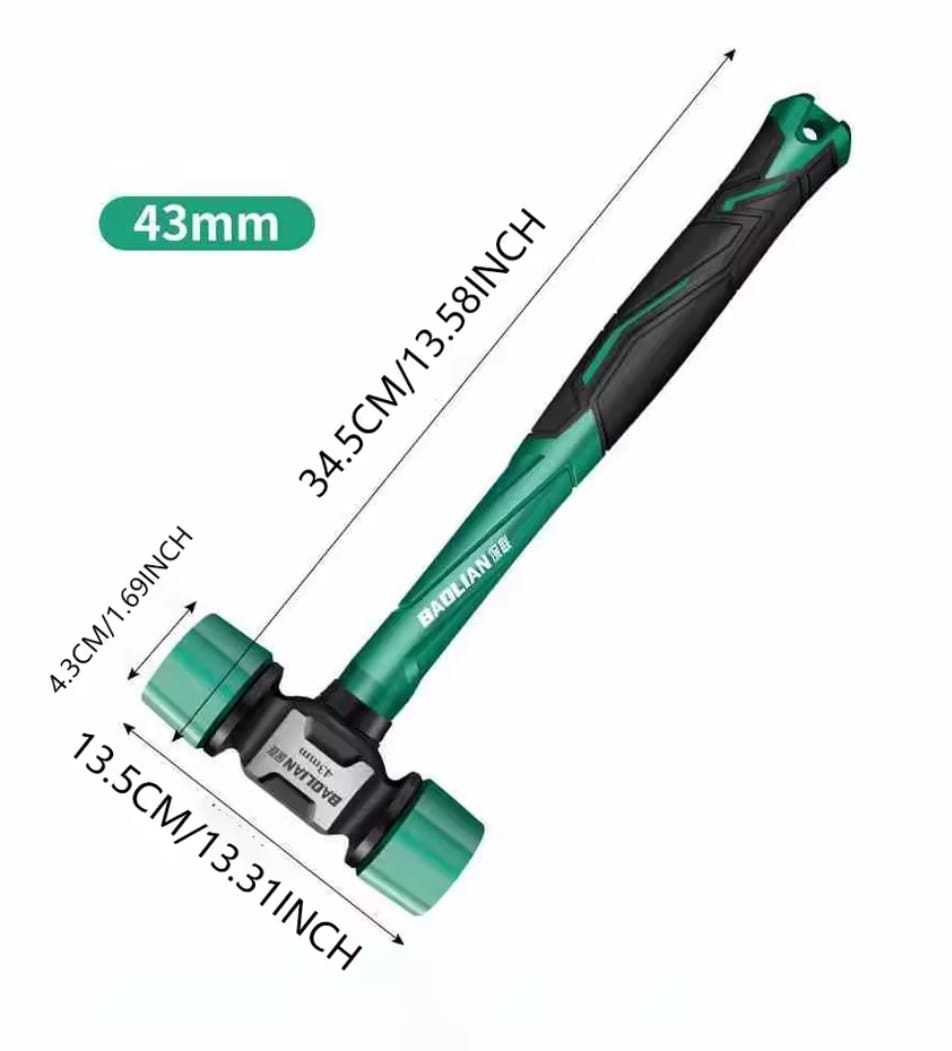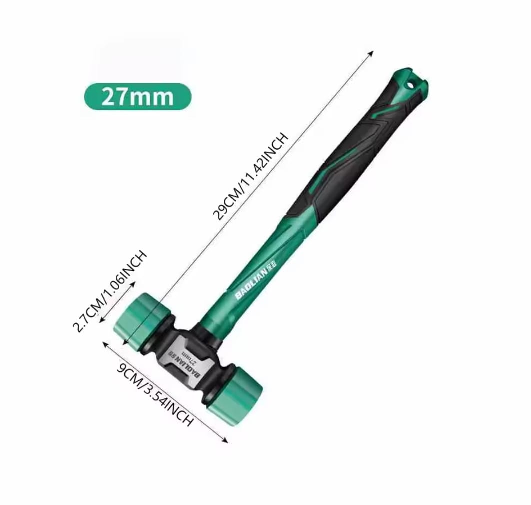 • ראשי גומי ניתנים להחלפה: ראשי הפטיש הירוקים עשויים גומי קשיח ועמיד המגן על חלקים מעובדים, תבניות ולוחות. ניתן להחליף את הראשים בקלות כשהם נשחקים.