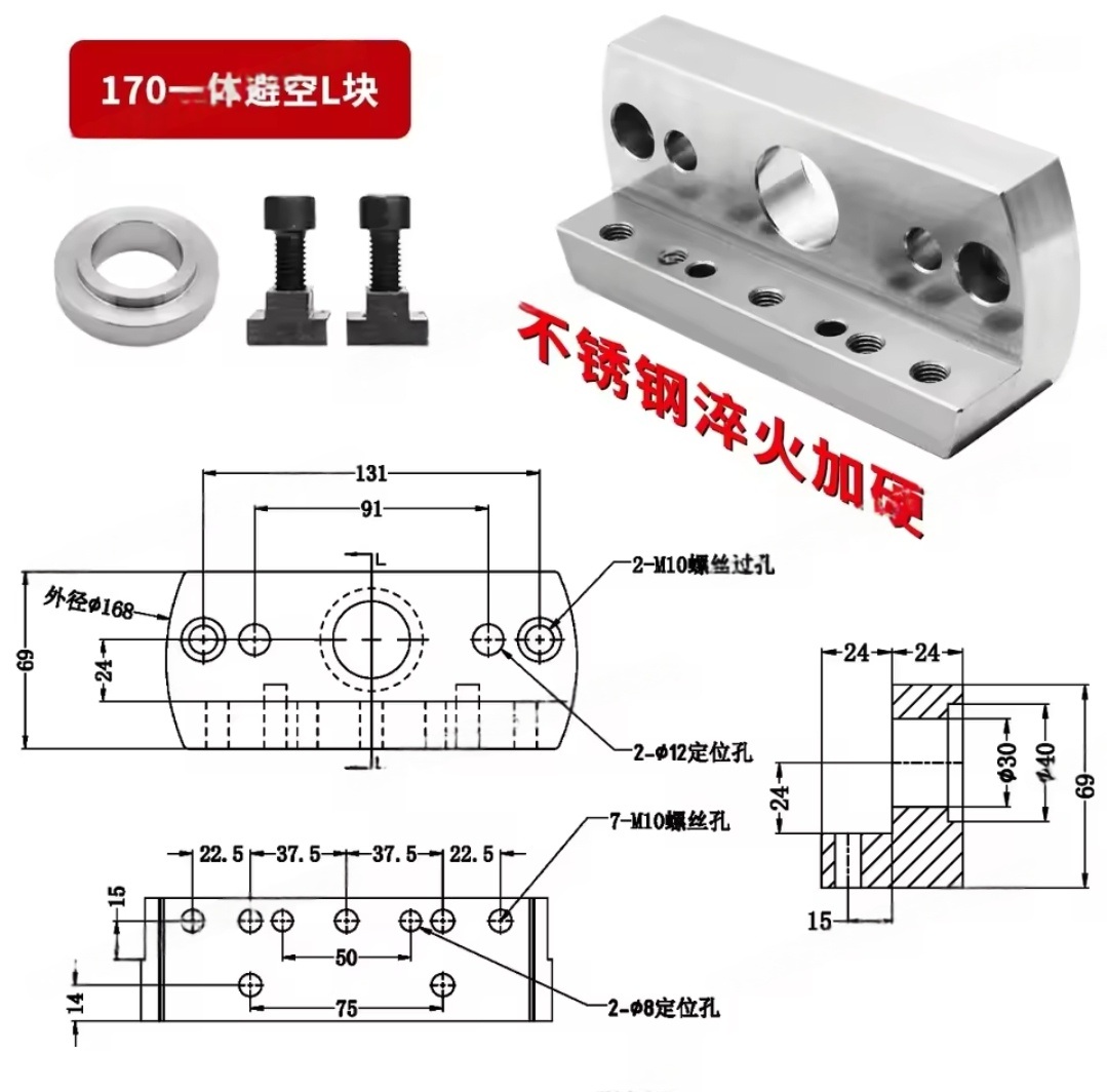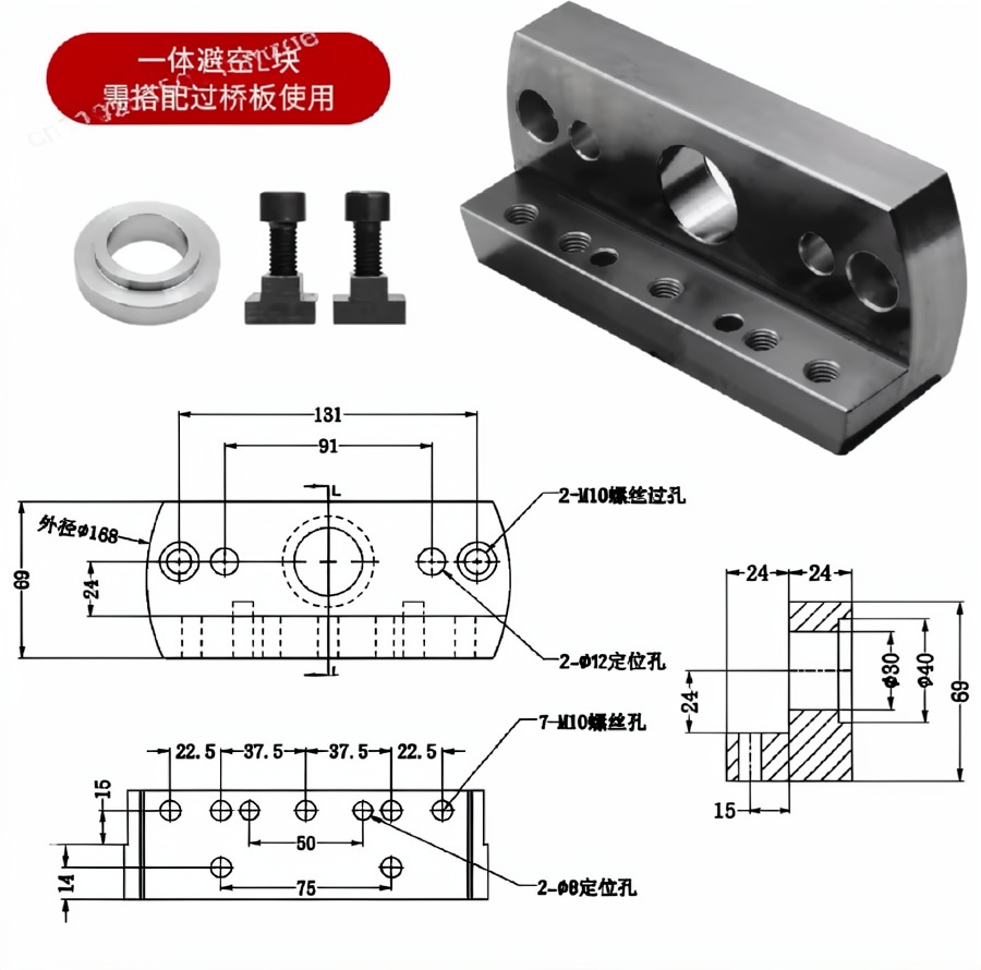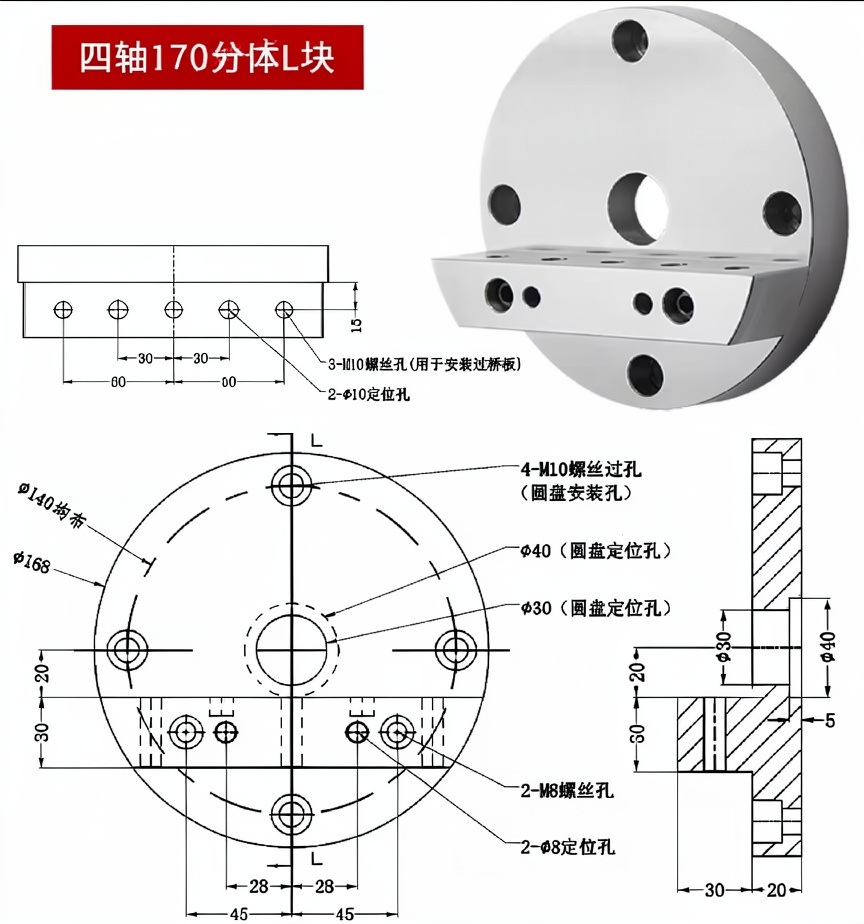 פלטת גשר חד צדדית בעלת 4 צירים בגודל L-Block לשולחן רוטיבי עם מרכז עצמי למכונות CNC