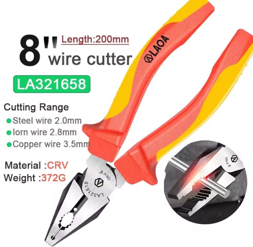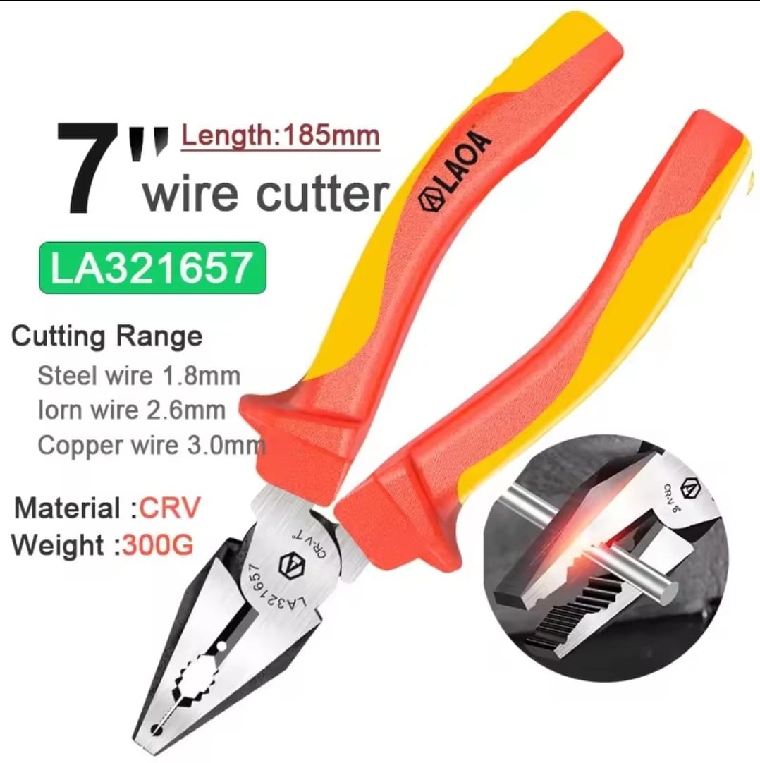 הפלייר הרב-תכליתי המבוקש ביותר (Combination Pliers) מבית LAOA, המשלב יכולת אחיזה חזקה עם יכולת חיתוך של חוטים קשיחים. הכלי מבודד לפי תקן VDE לעבודה בטוחה עד 1000V, עשוי פלדת CR-V איכותית ומעוצב לאחיזה נוחה ומניעת עייפות בעבודה ממושכת.