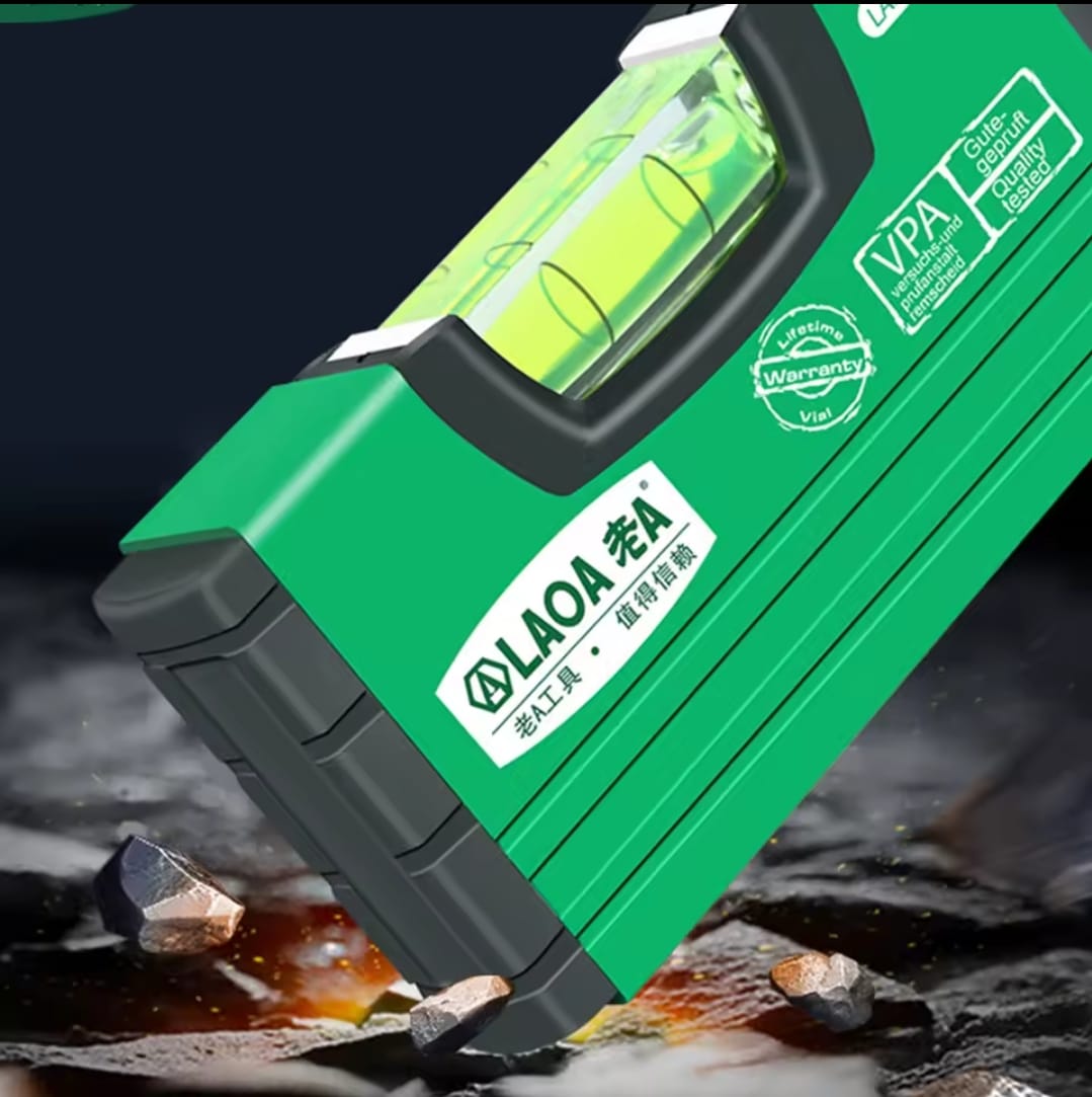 פלס כיס עוצמתי ומדויק מבית LAOA, המתוכנן לעבודה בתנאי שטח קשים. הכלי עשוי אלומיניום מעובה (2.26 מ"מ) המעניק לו עמידות יוצאת דופן בפני חבטות ונפילות, וכולל בסיס מגנטי חזק לעבודה נוחה על משטחי מתכת.
