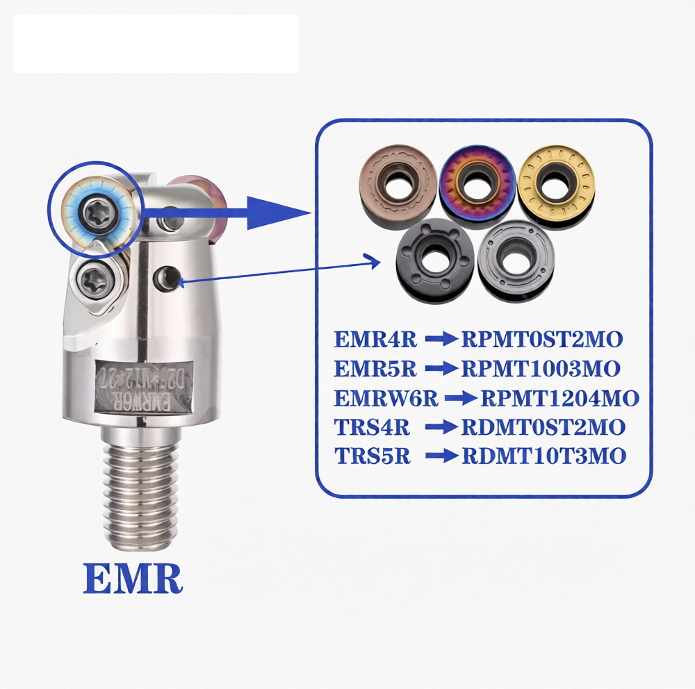 ראש כרסום EMR עם פלטות מתחלפות לכרסום מתכת EMR4R EMR5R EMRW6R