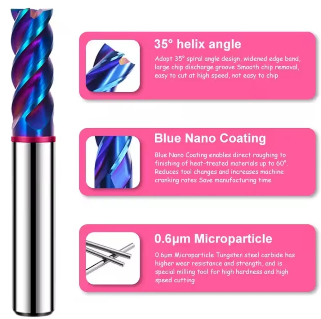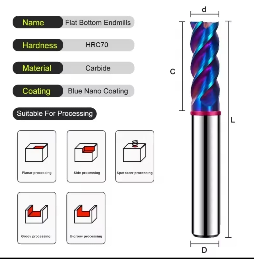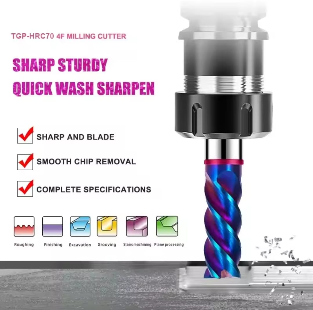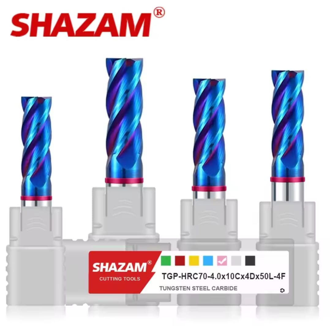 / שאזאם TGP-HRC70 4f צבע מעגל שטוח קצה טחנה טונגסטן פלדה ציפוי כחול קרביד ציפוי כרסום מכני cnc